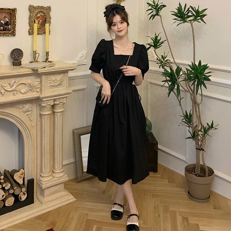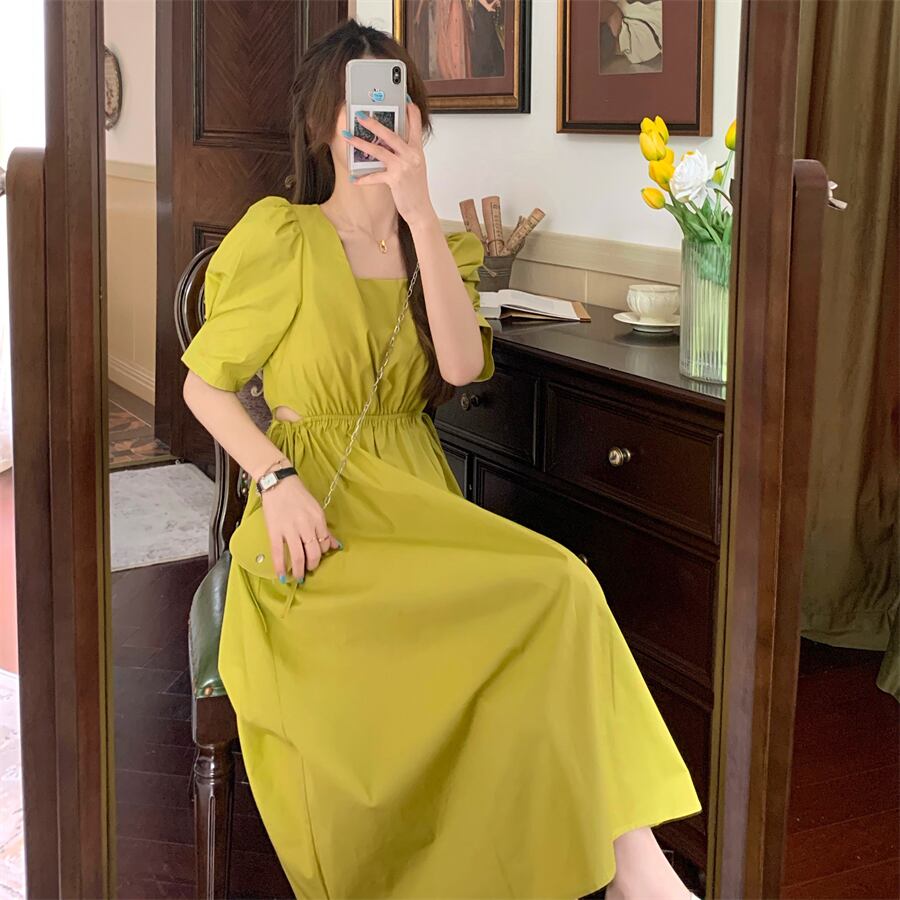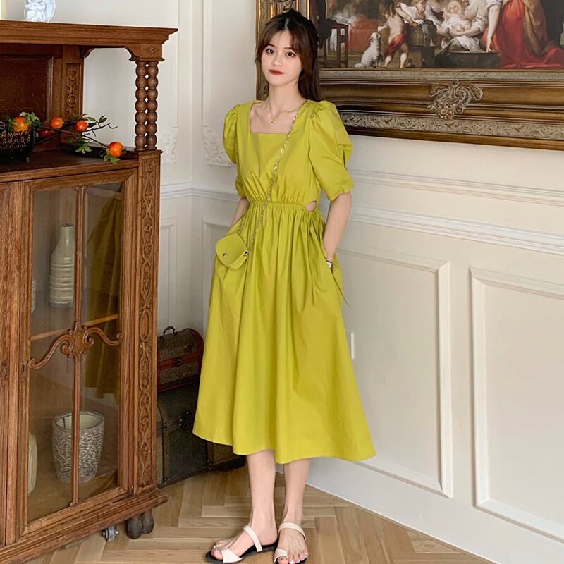 イエローワンピース夏服ロングスカート 大人ガーリー スウィート キュート カジュアル 夏物 ウエスト SYJ61418892400
