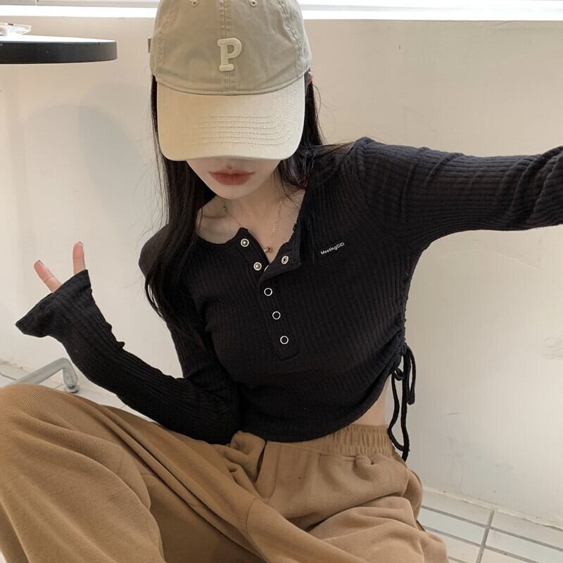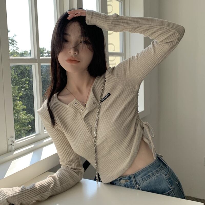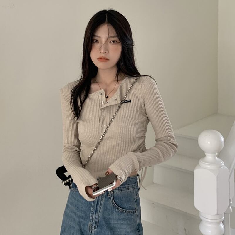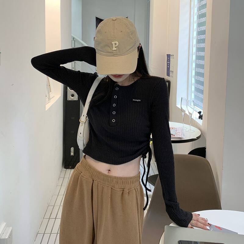 ショートトップス スプリングギャザースリムTシャツNEW ロング 大人ガーリー スウィート キュート カジュアル 春物 長袖 SYJ61975815696