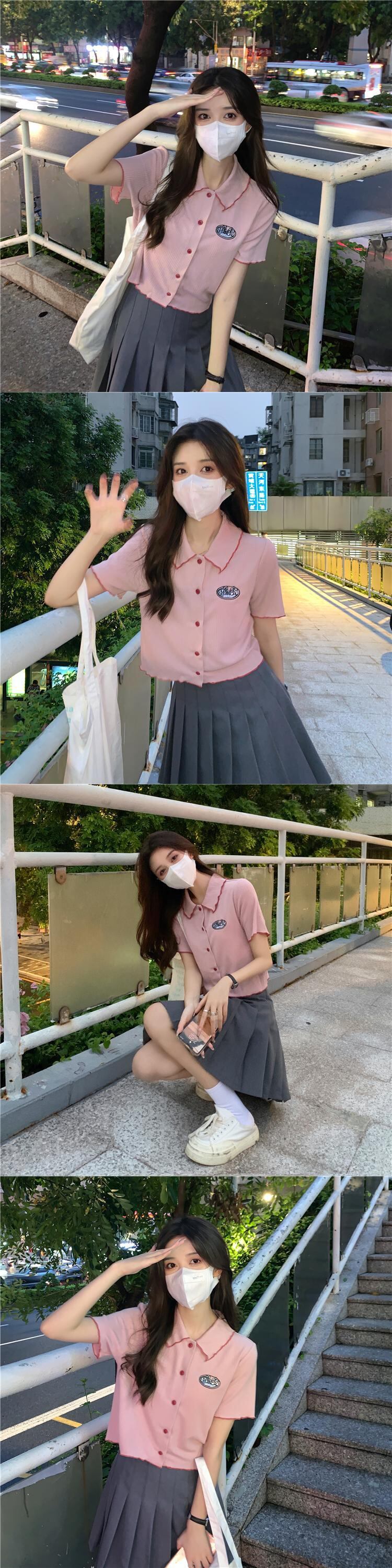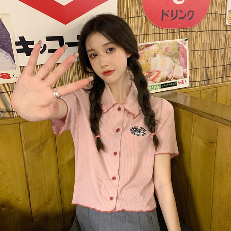 ショートトップス 夏服カラーTシャツNEW ピンク コットン 大人ガーリー スウィート キュート カジュアル 夏物 SYJ84665494750
