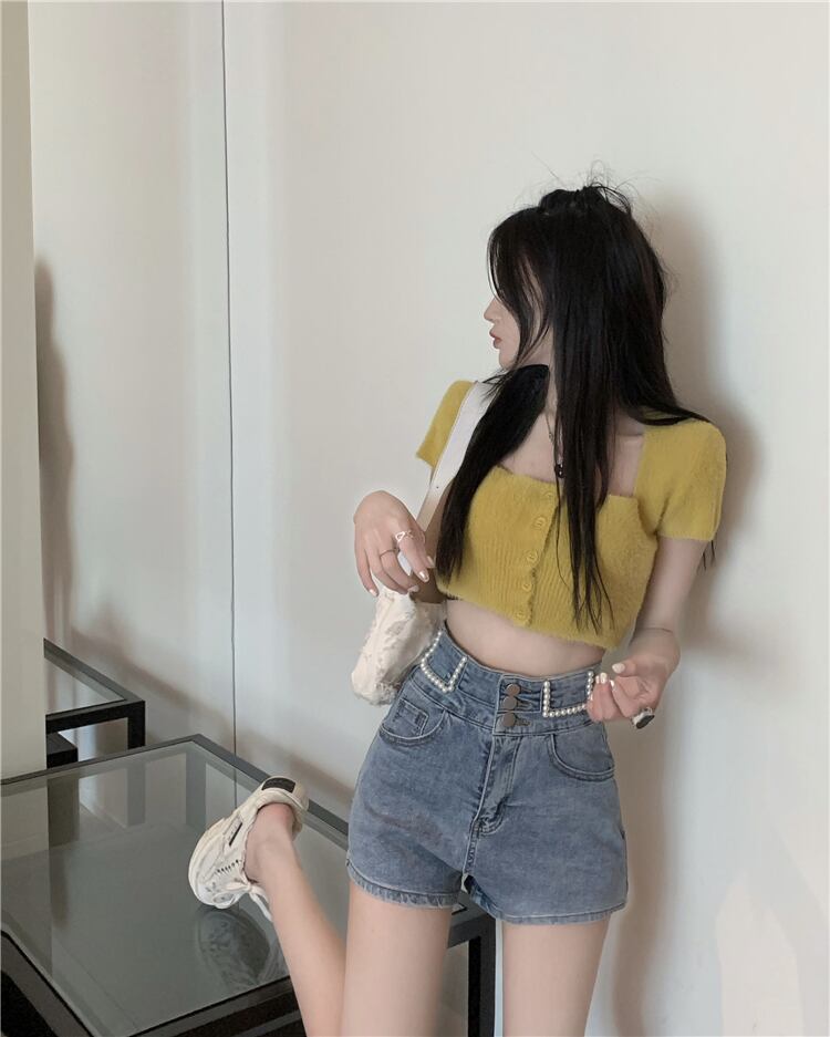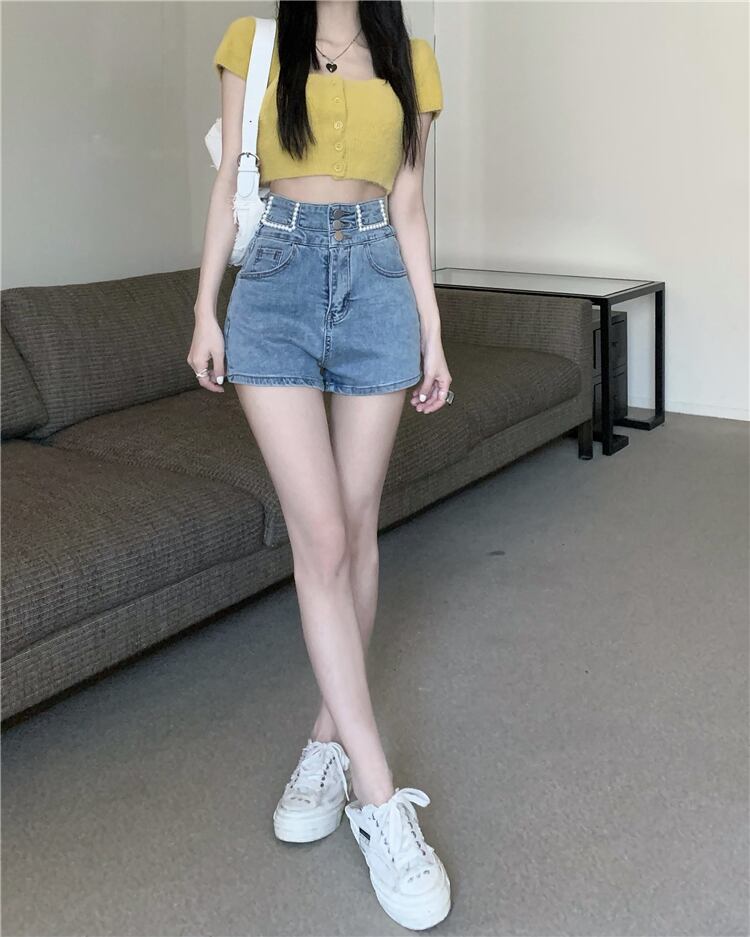 ショーツ レディースパンツ 夏服ハイウェストウェストルーズワイドレッグ 夏物 ワイドパンツ ウエスト SYJ51418038991