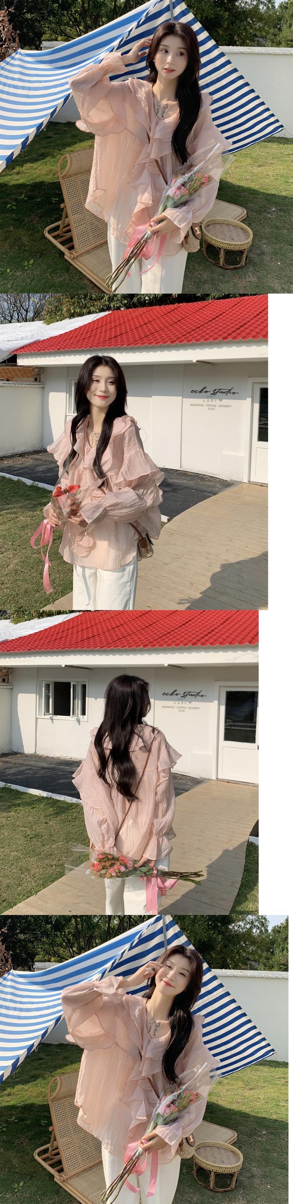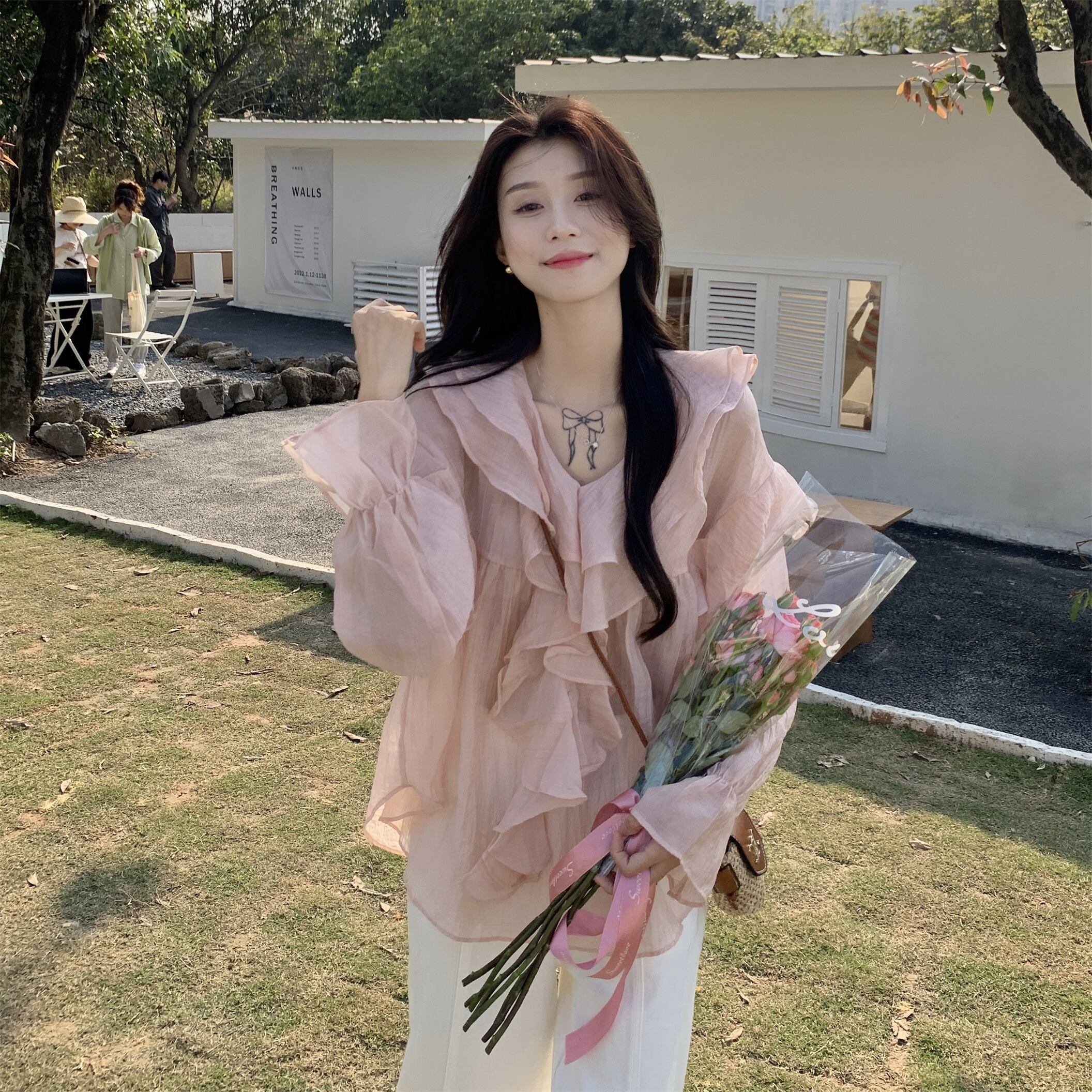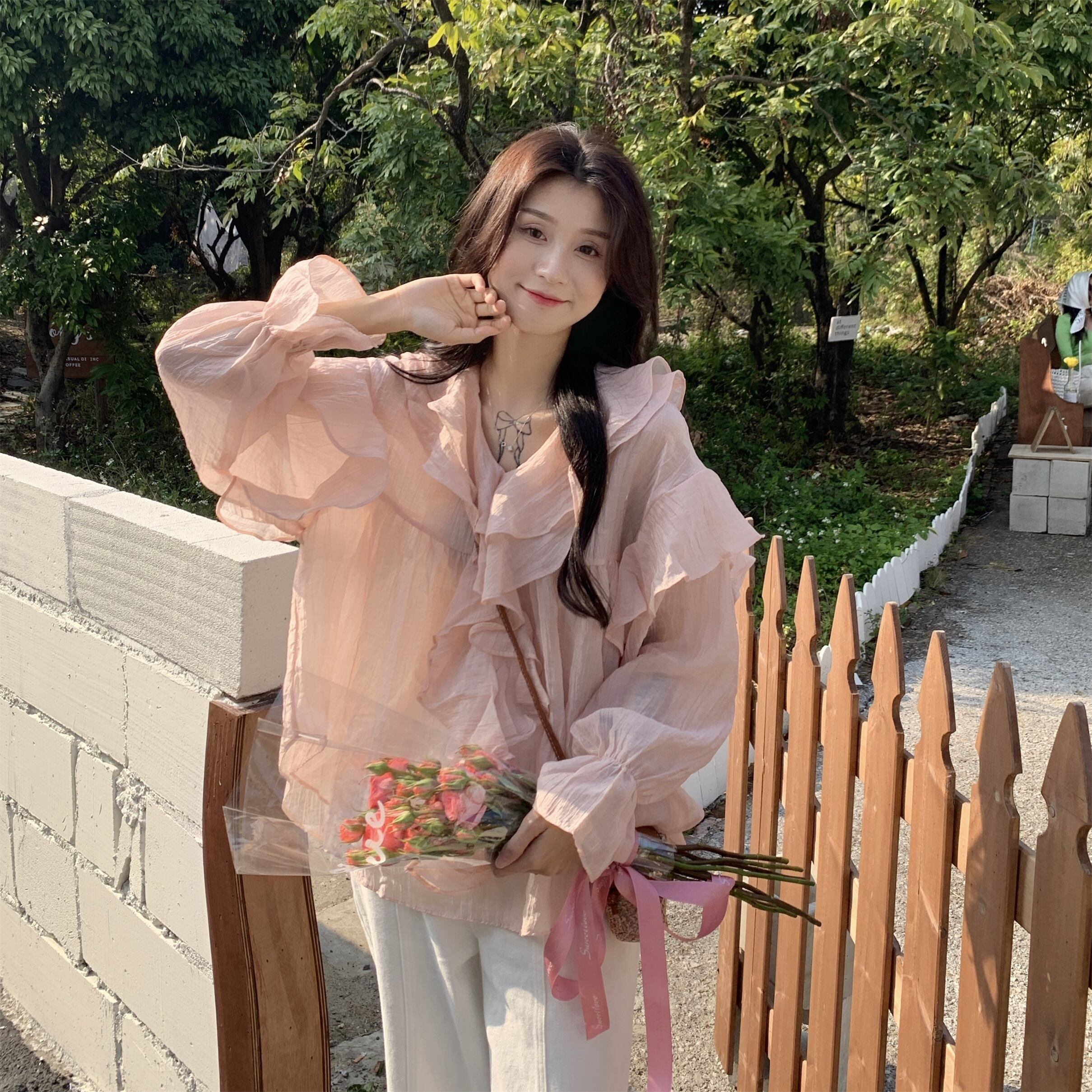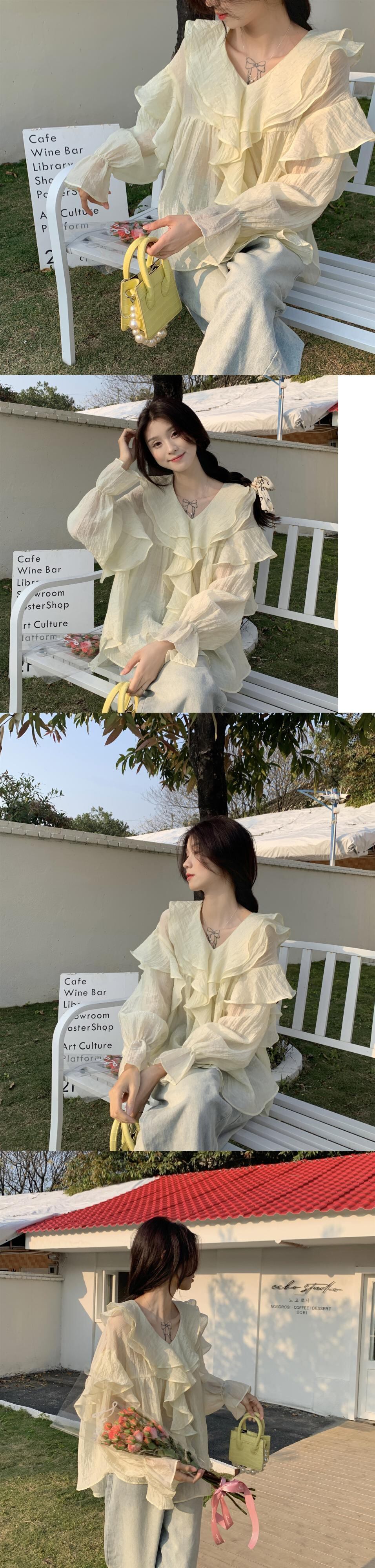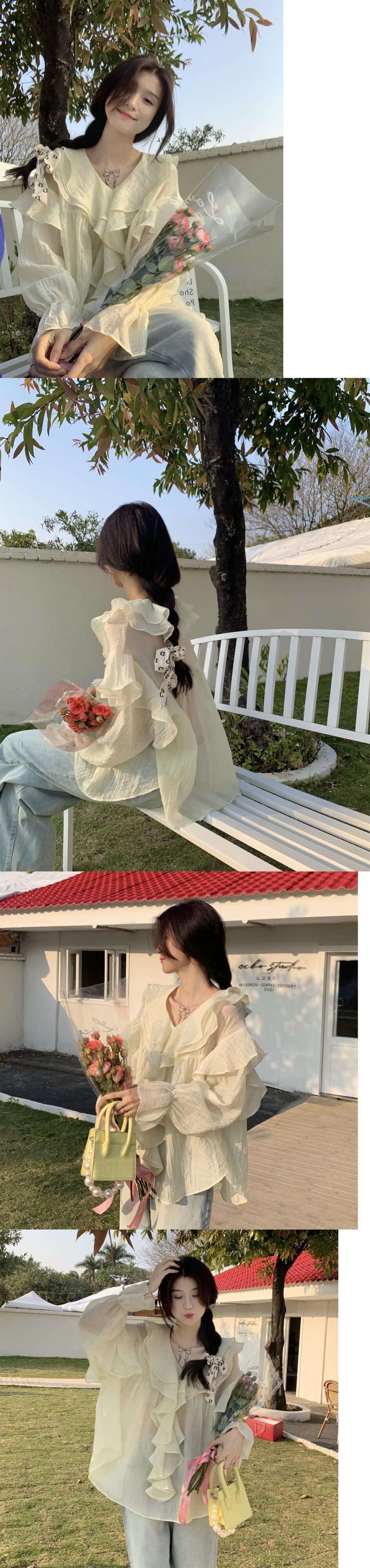 トップス スプリングVネックシフォンシャツ 春物 SYJ25471861167