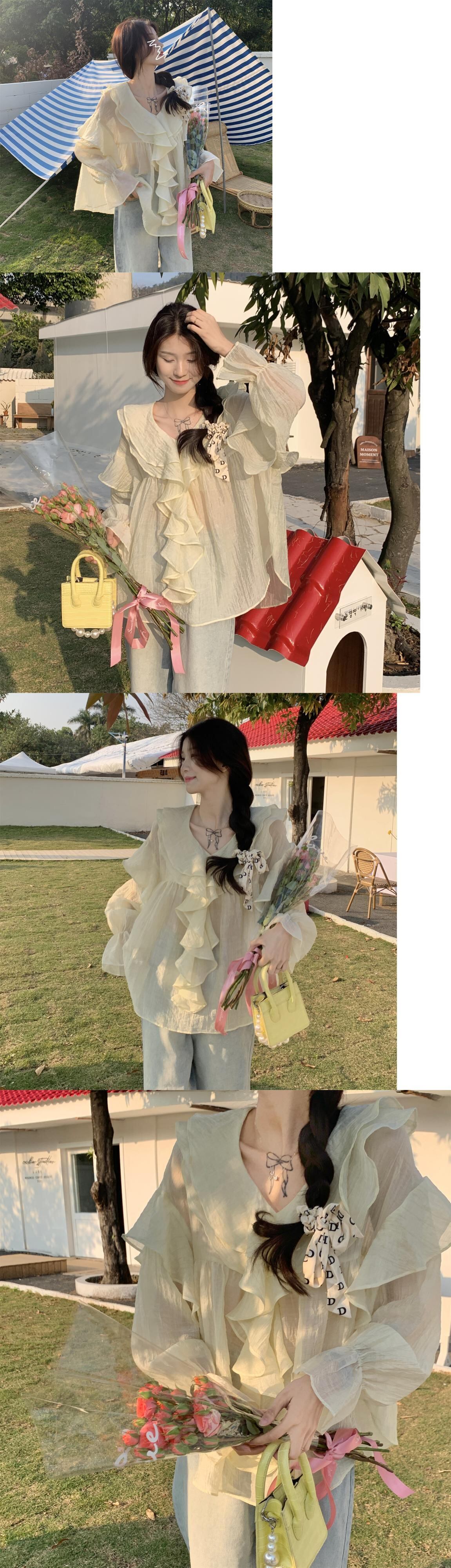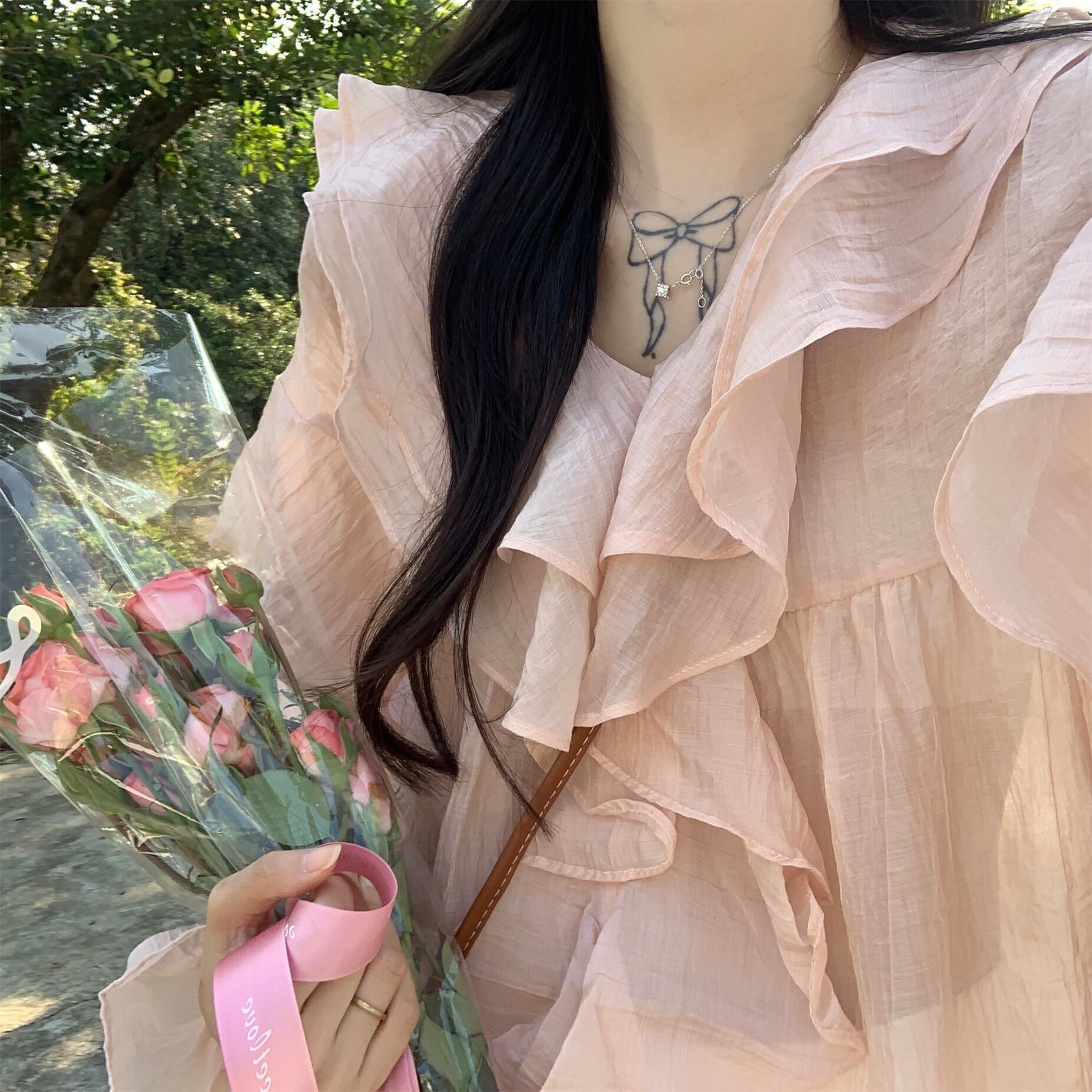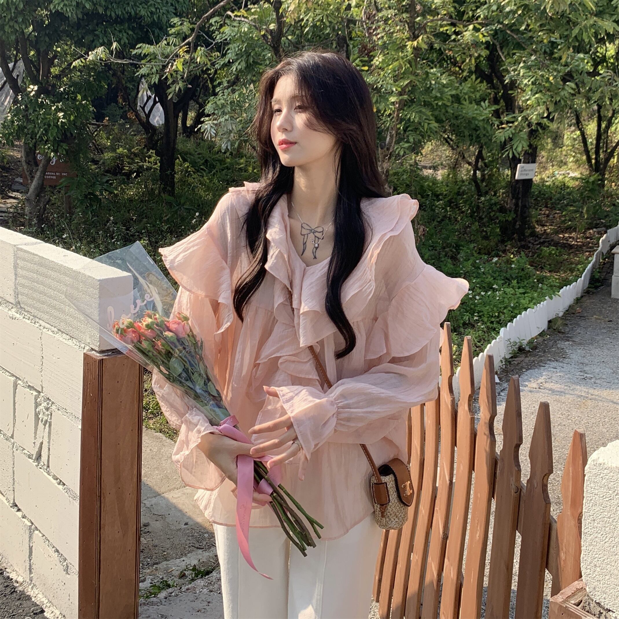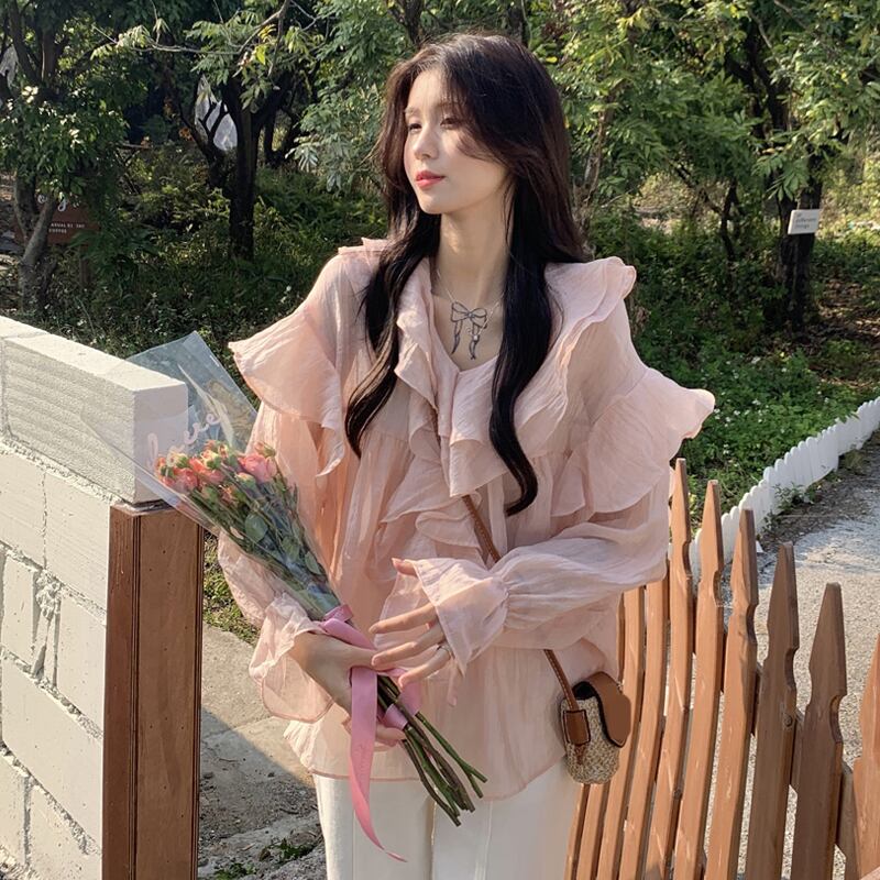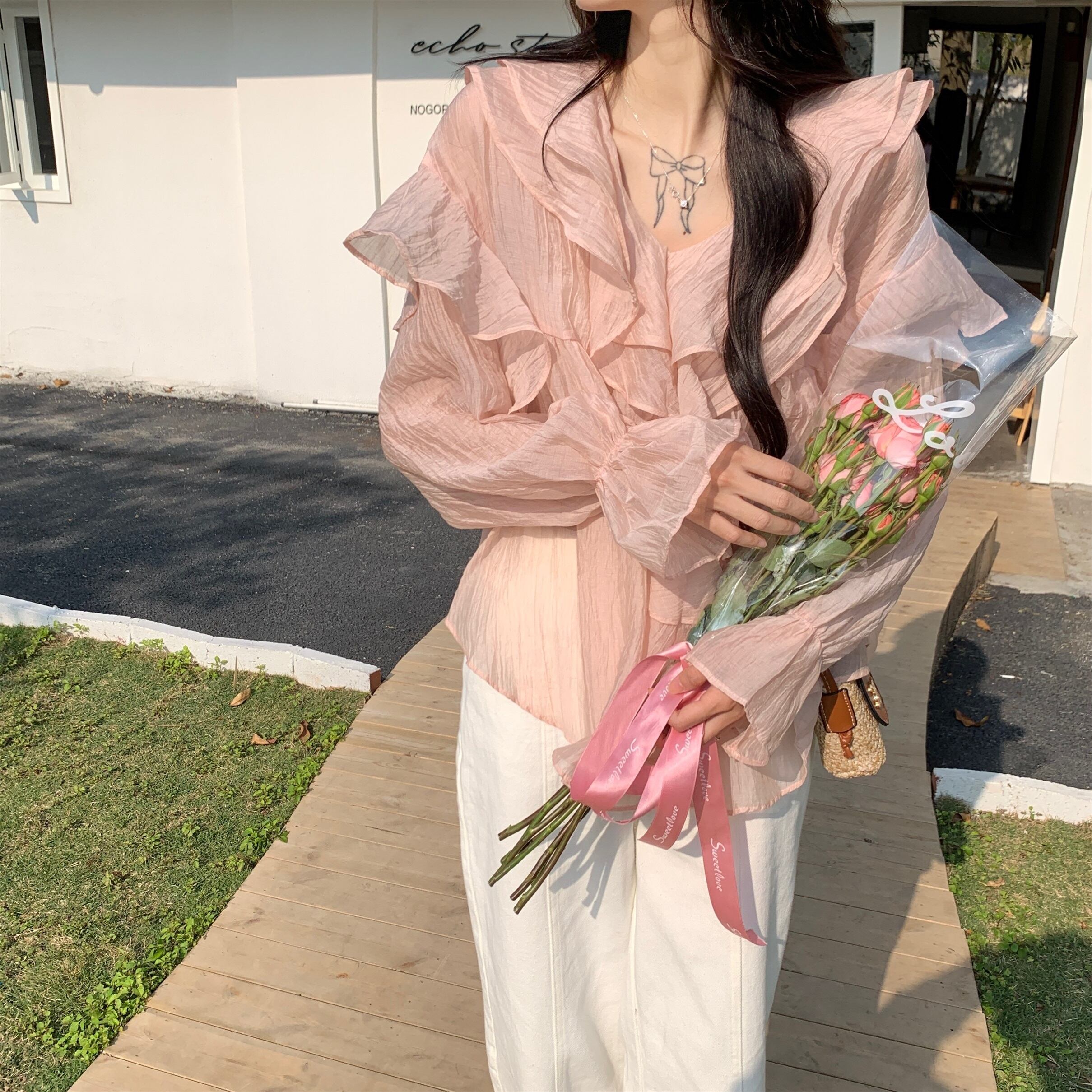 トップス スプリングVネックシフォンシャツ 春物 SYJ25471861167
