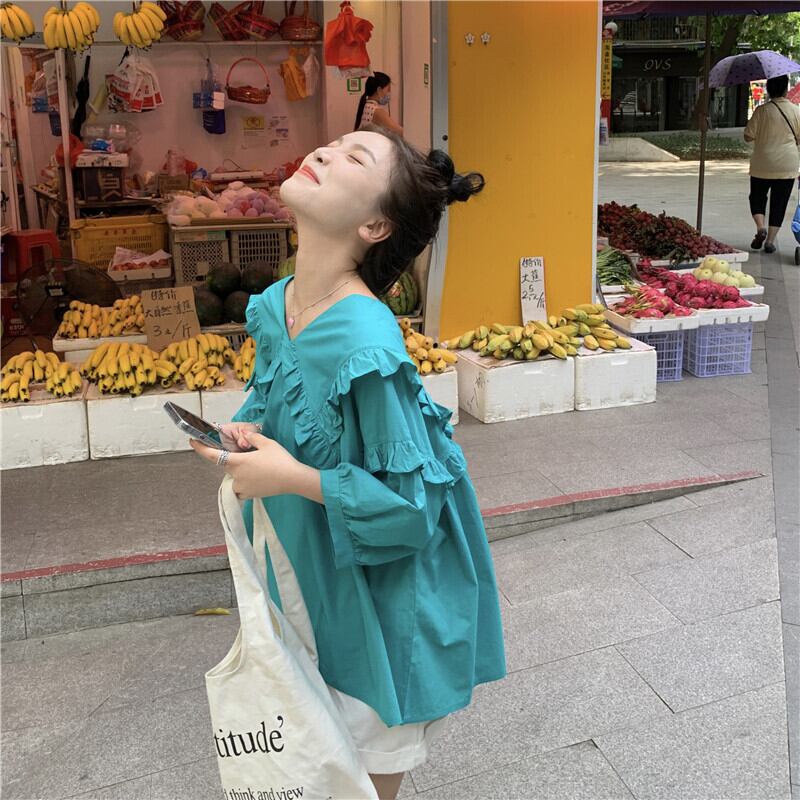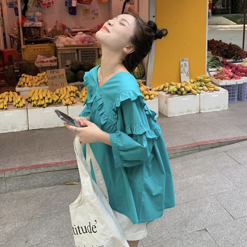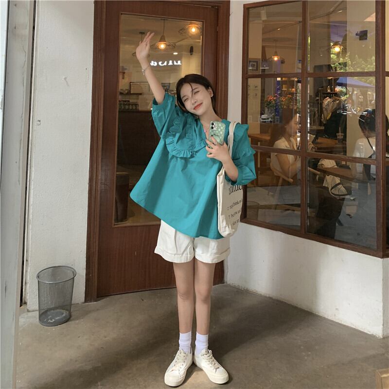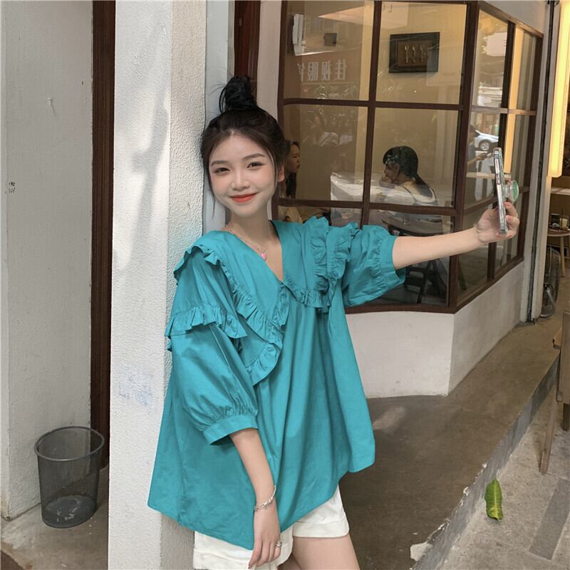 ブルーカラーシャツ 夏服スリーブトップス 大人ガーリー スウィート キュート カジュアル 夏物 SYJ50870569396