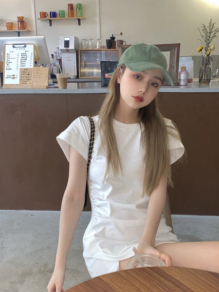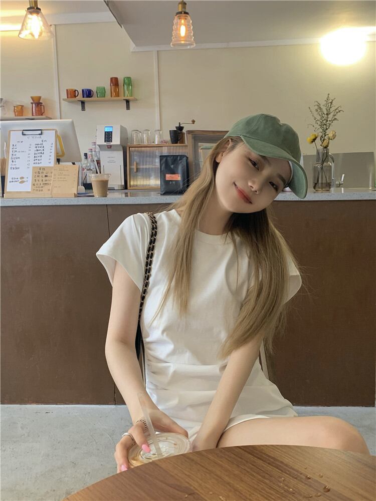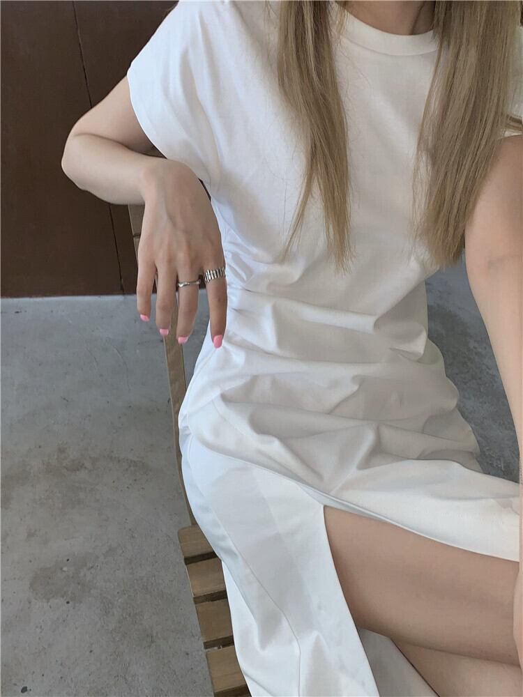 ホワイトTシャツワンピース夏服スリットロングスカート 夏物 SYJ57410363829
