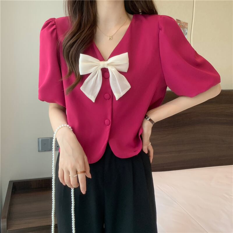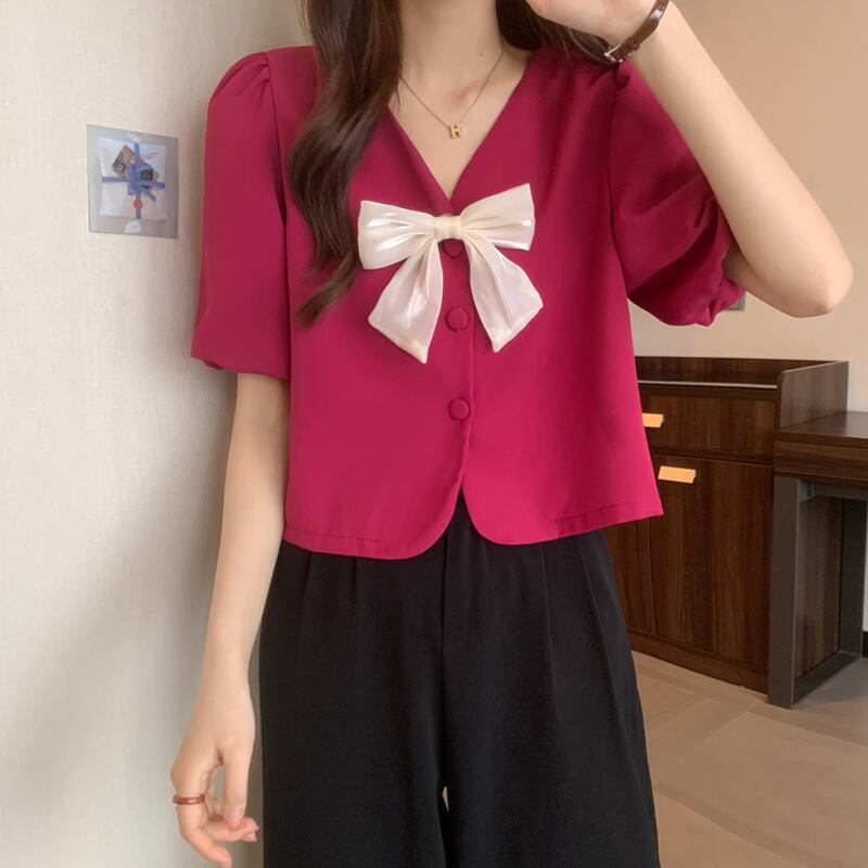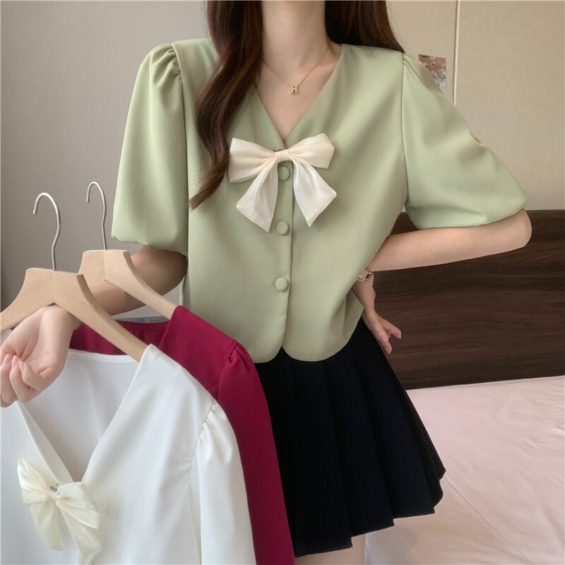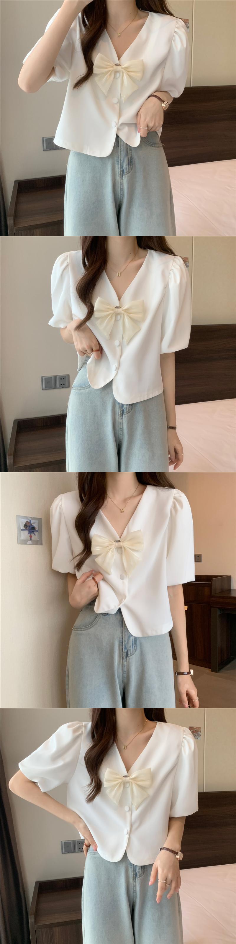 Vネックショートトップス 夏服ホワイトシャツ 夏物 SYJ37680822948