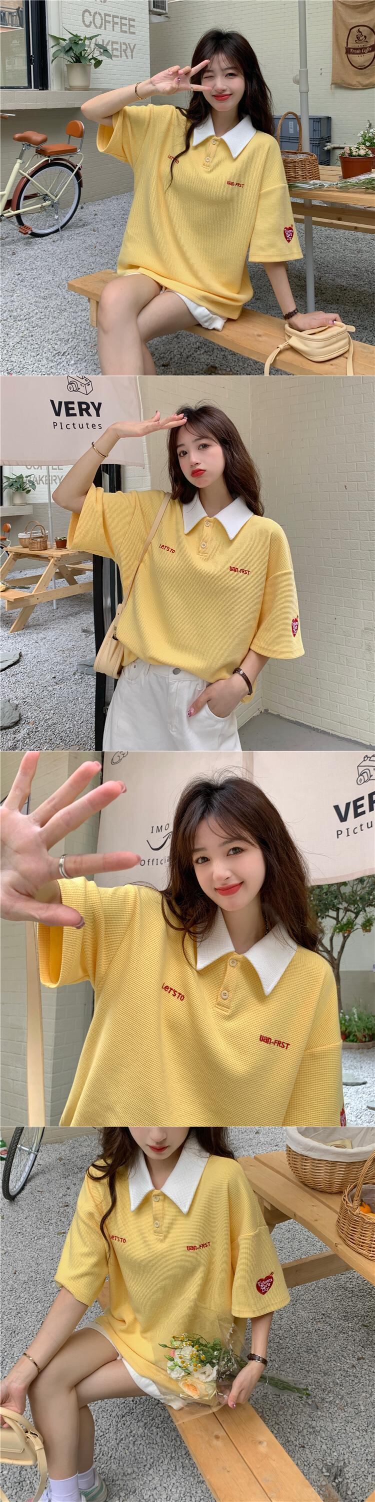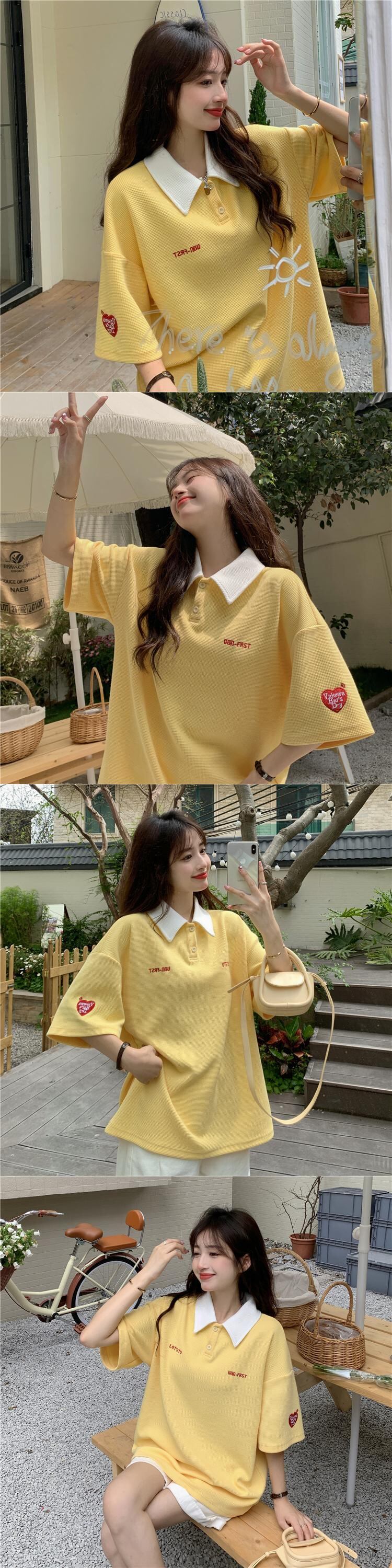 イエローカラーTシャツ夏服ルーズ韓国ファッションスタイルオーバーサイズトップス 夏物 SYJ76606778978