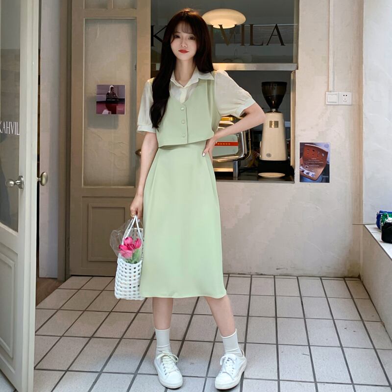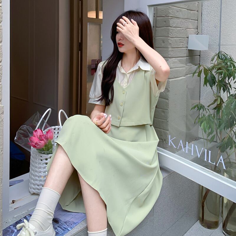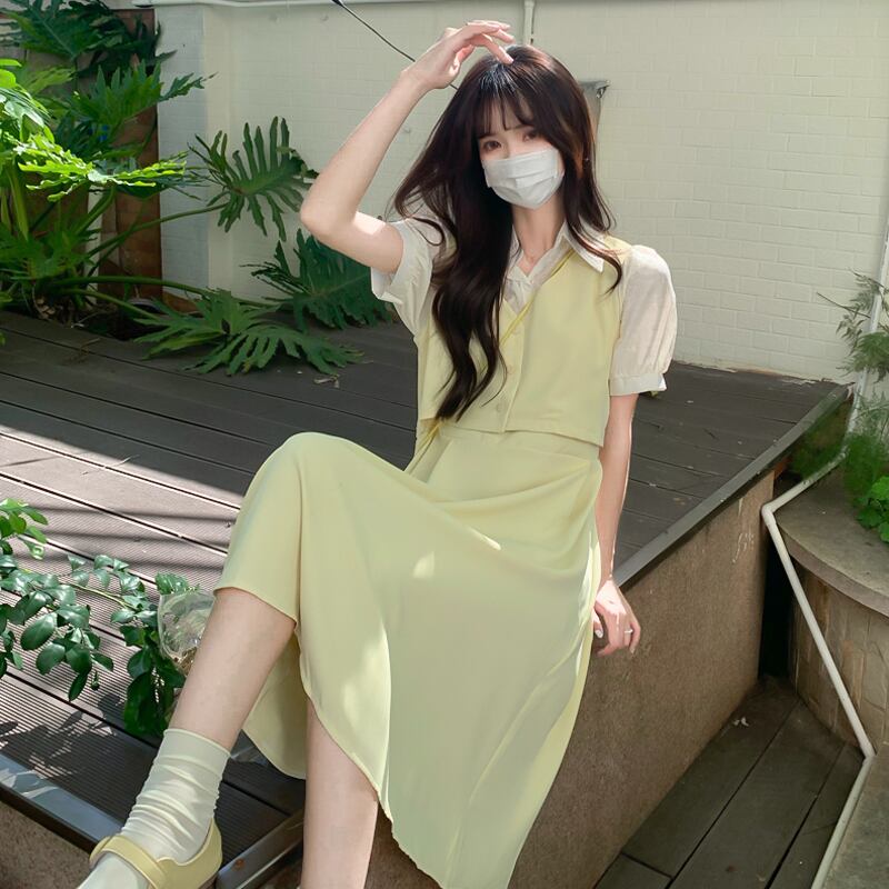 ワンピース夏服韓国ファッションスタイルロングスカート 大人ガーリー スウィート キュート カジュアル 夏物 SYJ19695852435