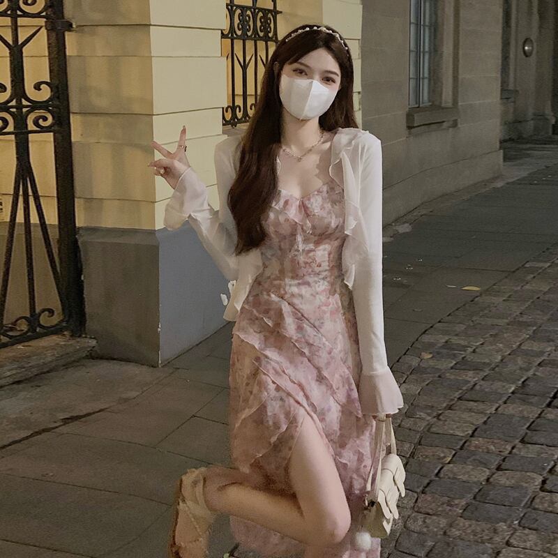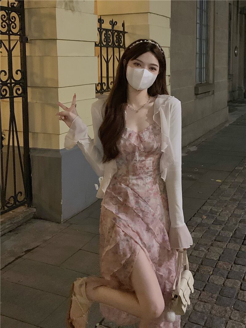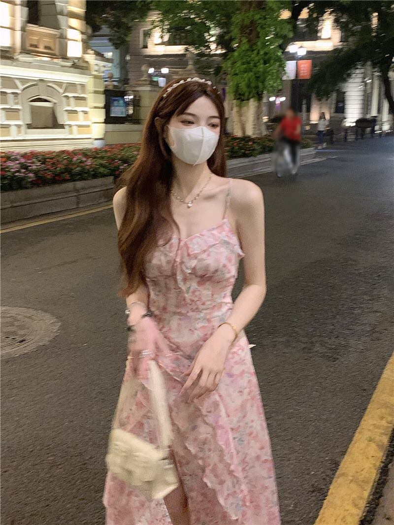 フローラルワンピースレディース夏服韓国ファッションロングスカート 夏物 花柄 SYJ2981361236
