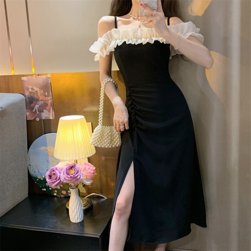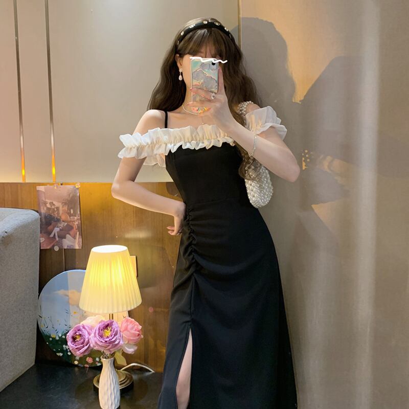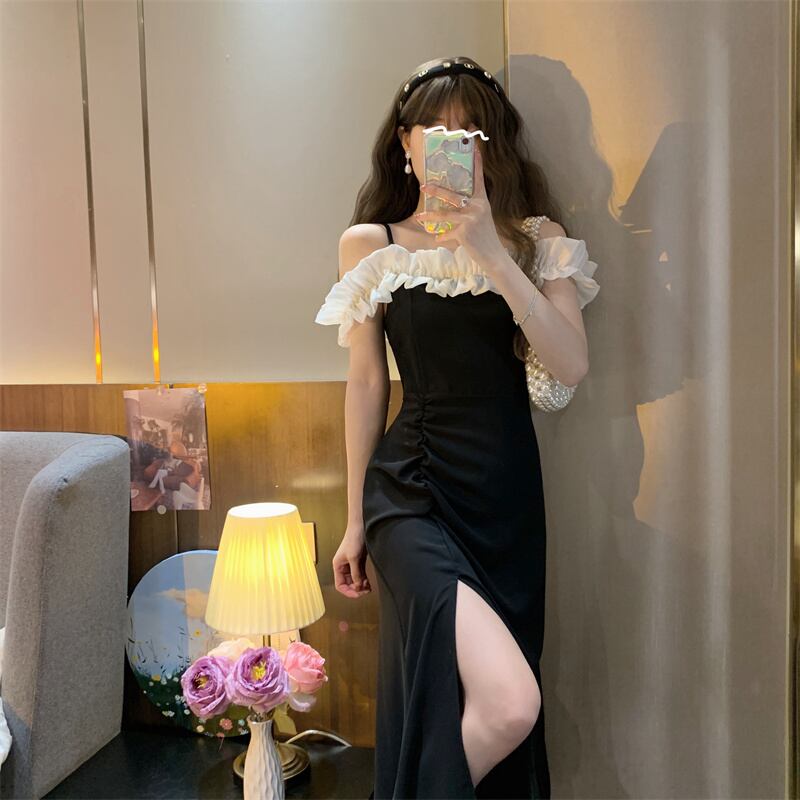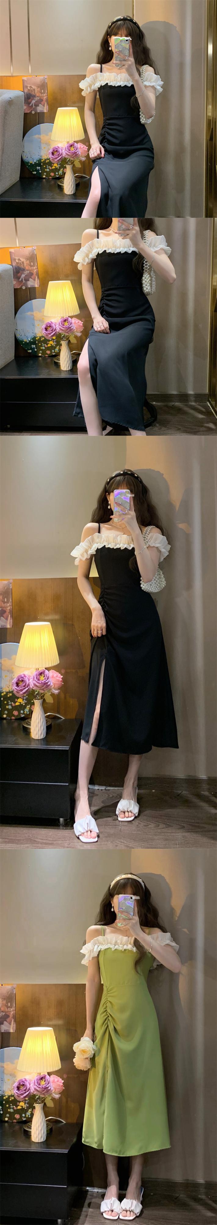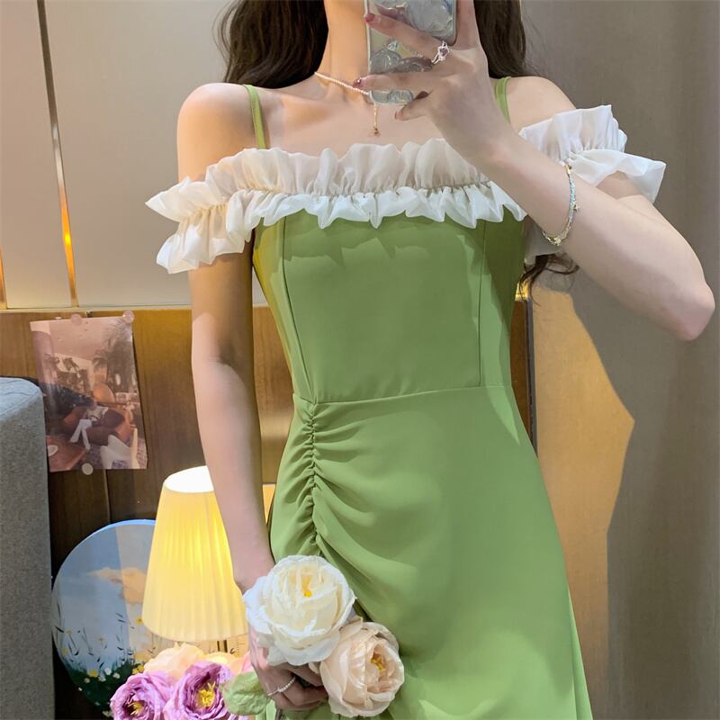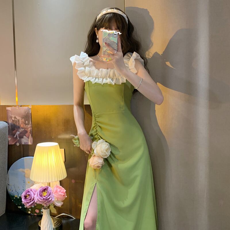 グリーンワンピース夏服スリットロングスカート 夏物 SYJ15199396879