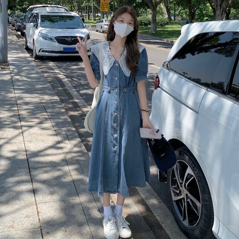 スカート ワンピース夏服韓国ファッションカラーウェストスリムロング 夏物 ウエスト SYJ4971886208