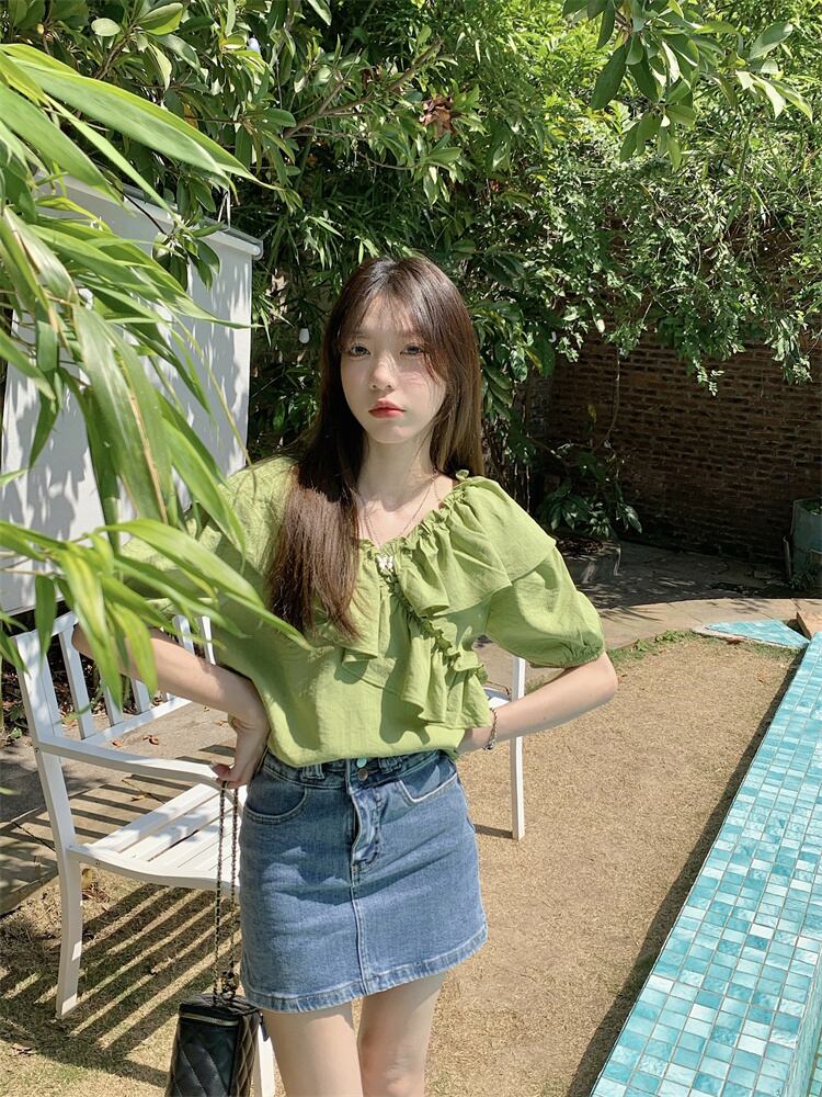 グリーントップス 夏服韓国ファッションシャツ 夏物 SYJ17075911434