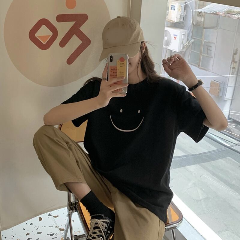 ブラックTシャツ夏服ルーズ韓国ファッショントップス NEW 夏物 スタイル SYJ7679397551