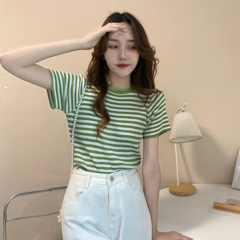 ストライプニットショートTシャツ夏服トップス NEW 夏物 SYJ4030396965