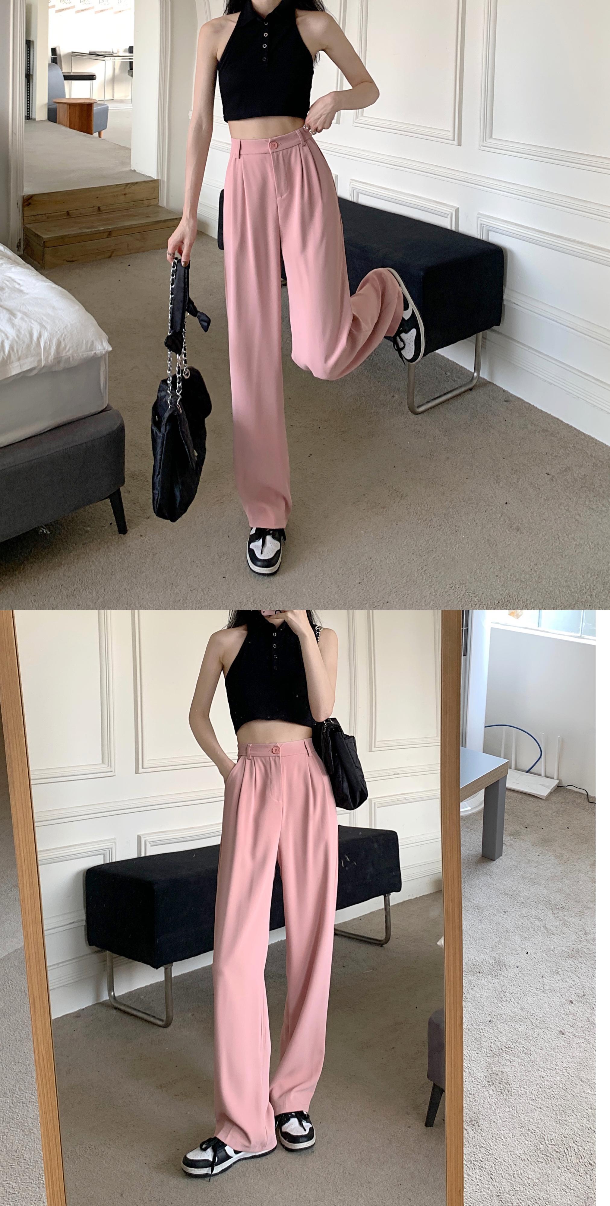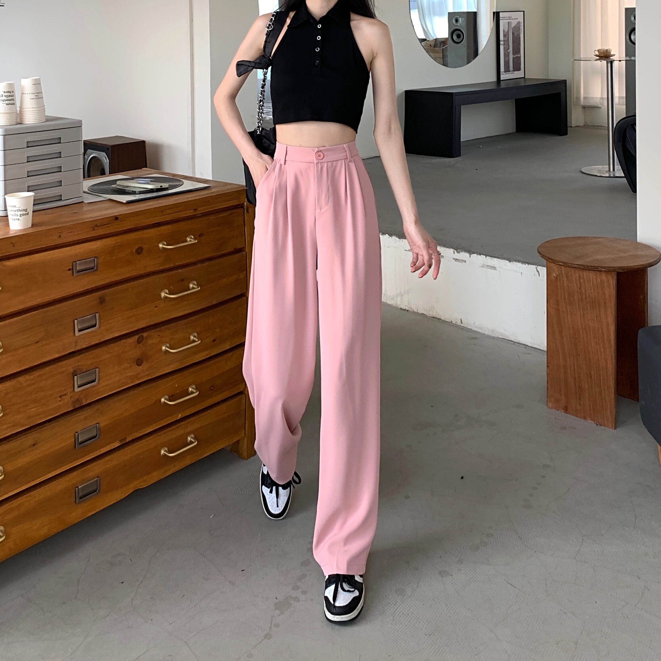 パンツ 夏服薄手カジュアルハイウェストNEW ピンク 夏物 ウエスト SYJ54503132654
