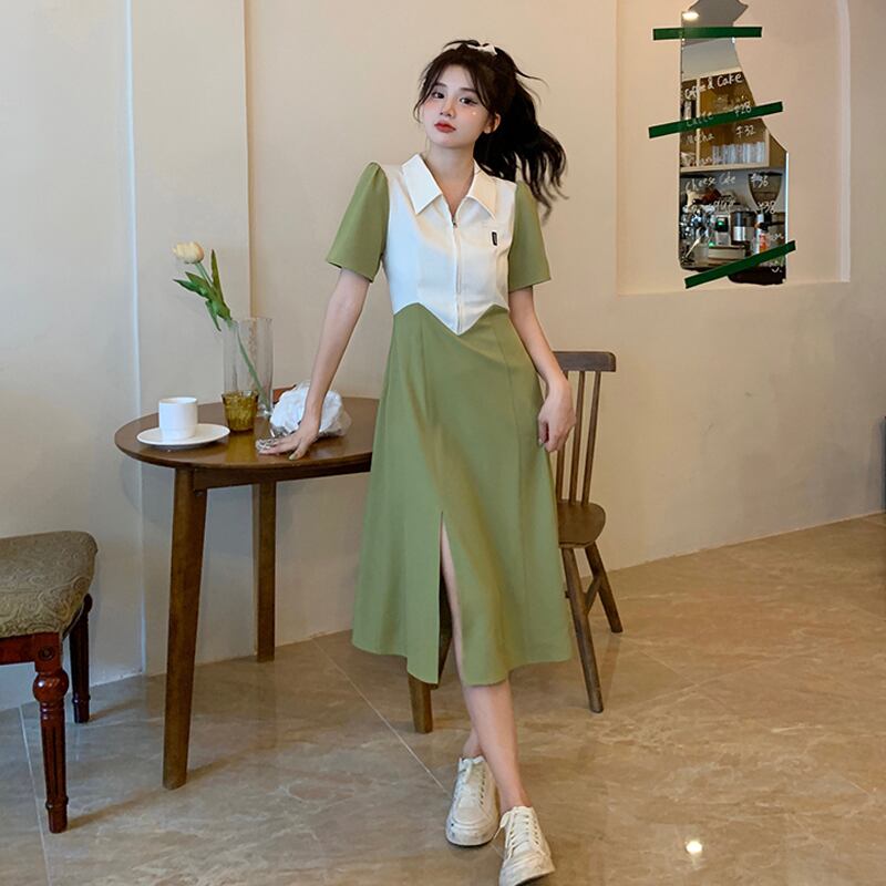 カラーワンピース夏服韓国ファッションスタイルスリムロングスカート 夏物 SYJ16005328476