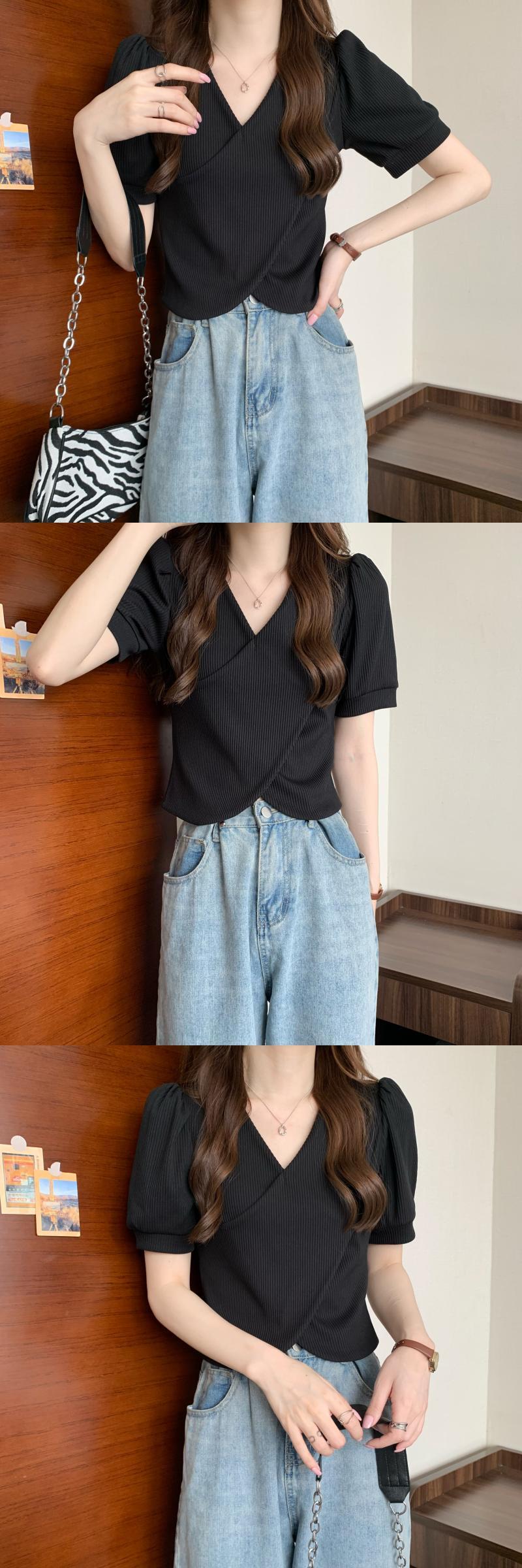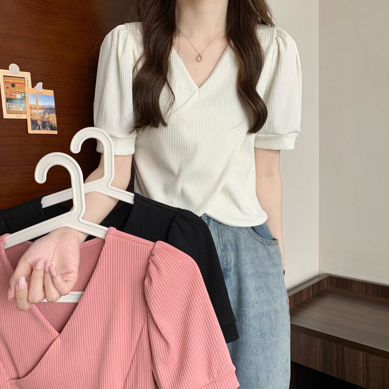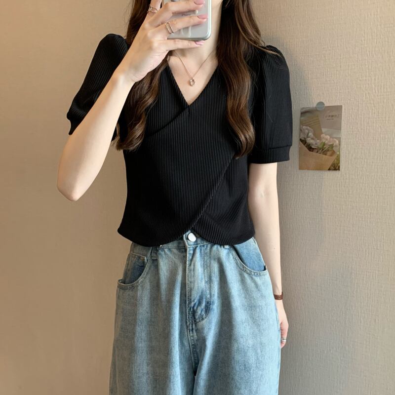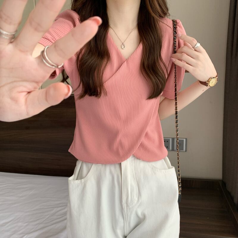 韓国ファッションショートトップス 夏服Vネックシャツ 夏物 SYJ80744046114