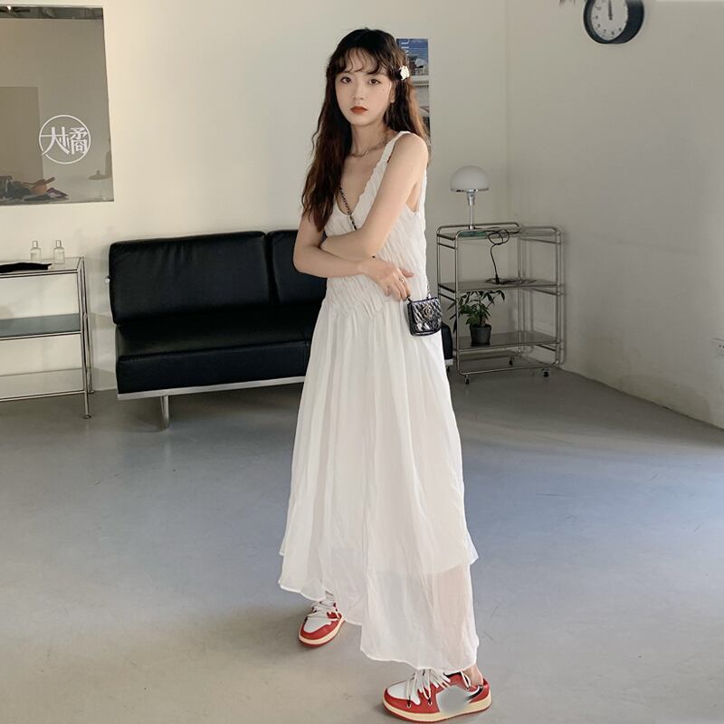 ホワイトワンピースレディース夏服スタイルロングスカート 大人ガーリー スウィート キュート カジュアル 夏物 SYJ18592703787