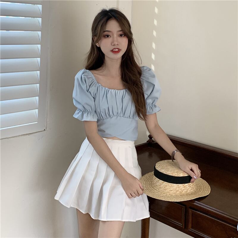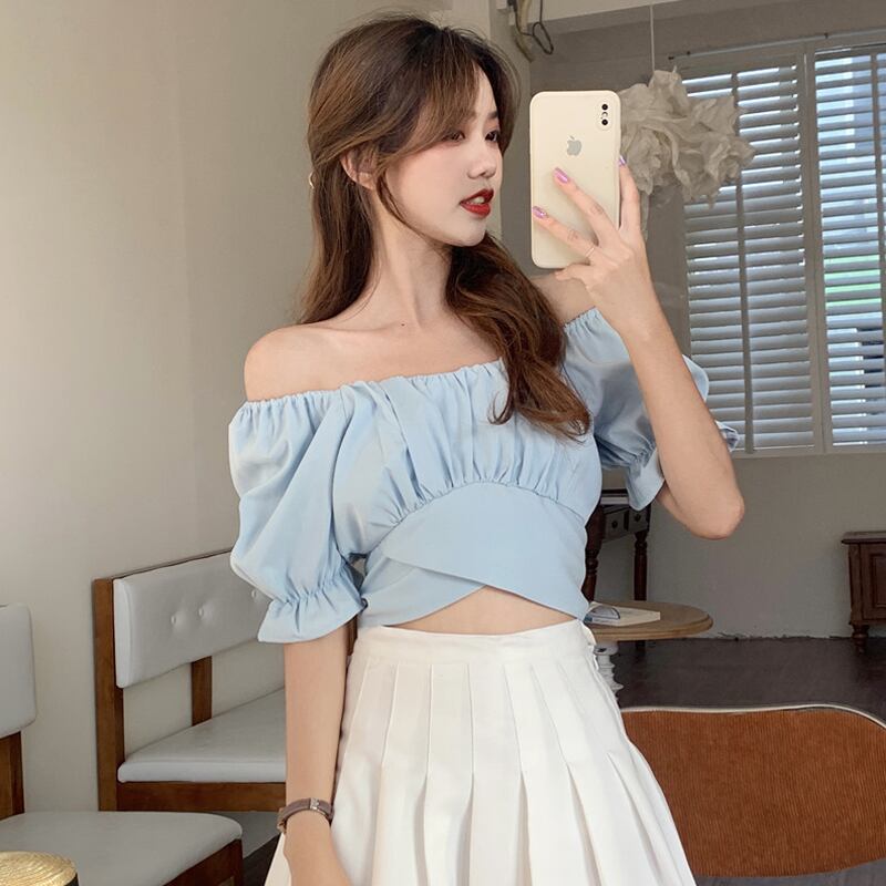 ブルーショートシャツ 夏服トップス 大人ガーリー スウィート キュート カジュアル 夏物 SYJ36565746201