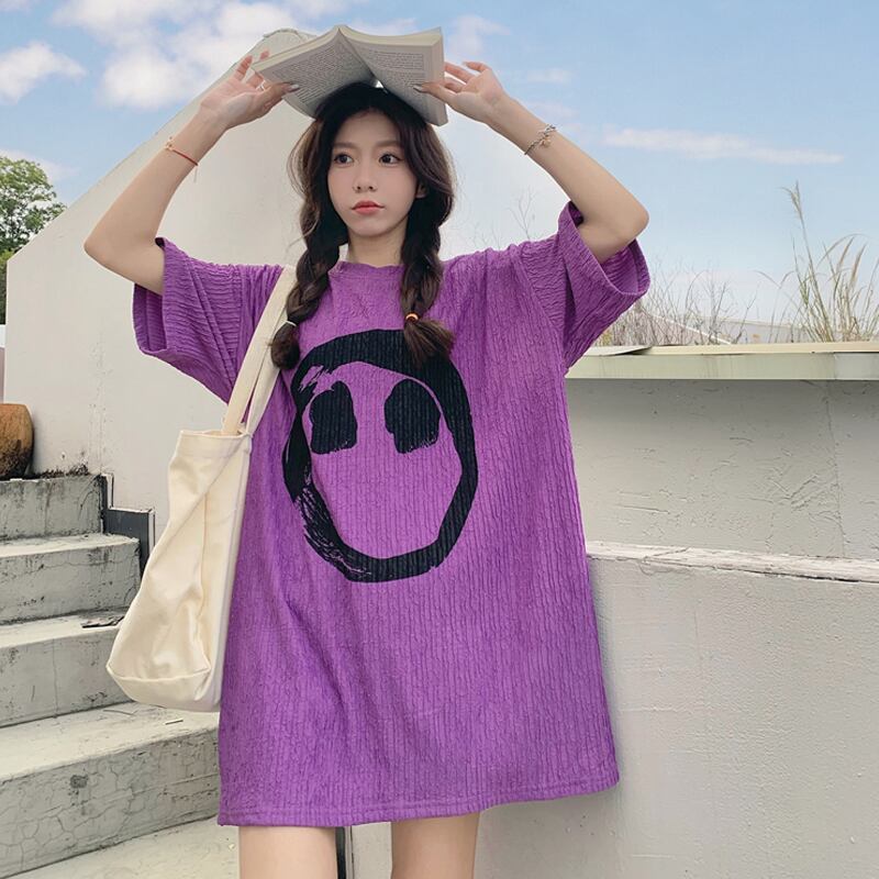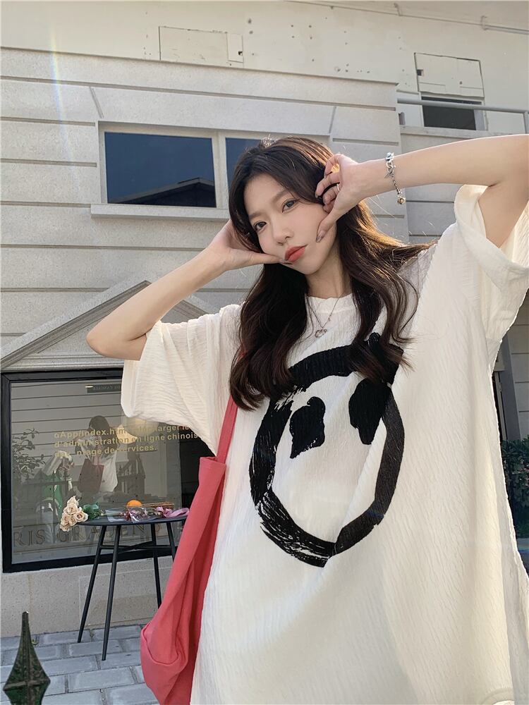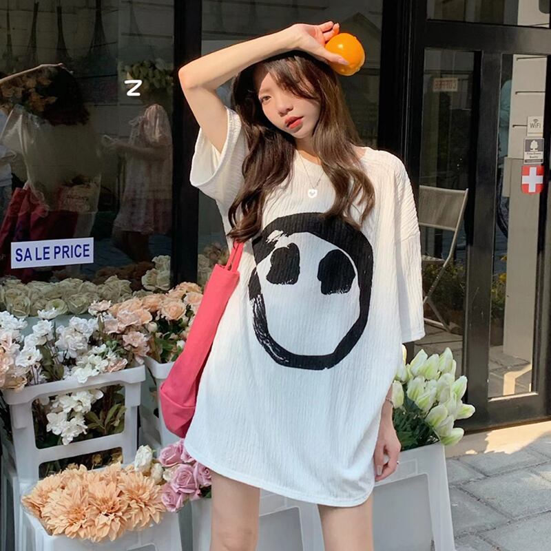 ホワイトTシャツ夏服ルーズトップス 夏物 ミドル丈 SYJ52692741950