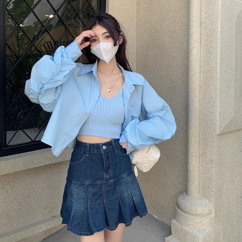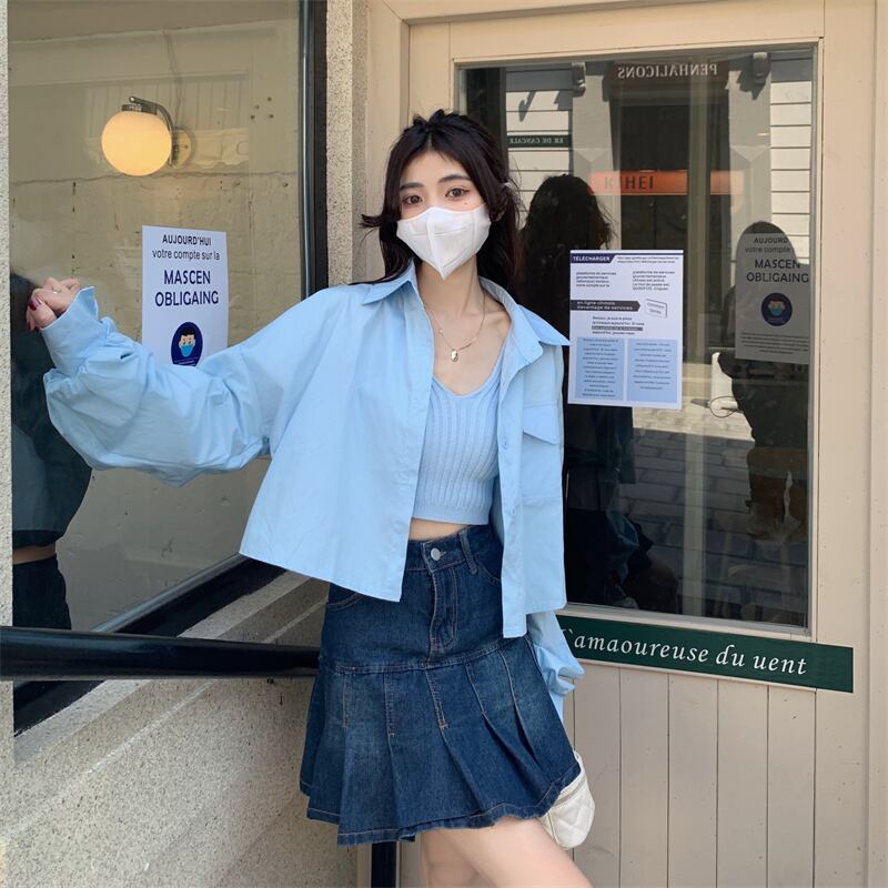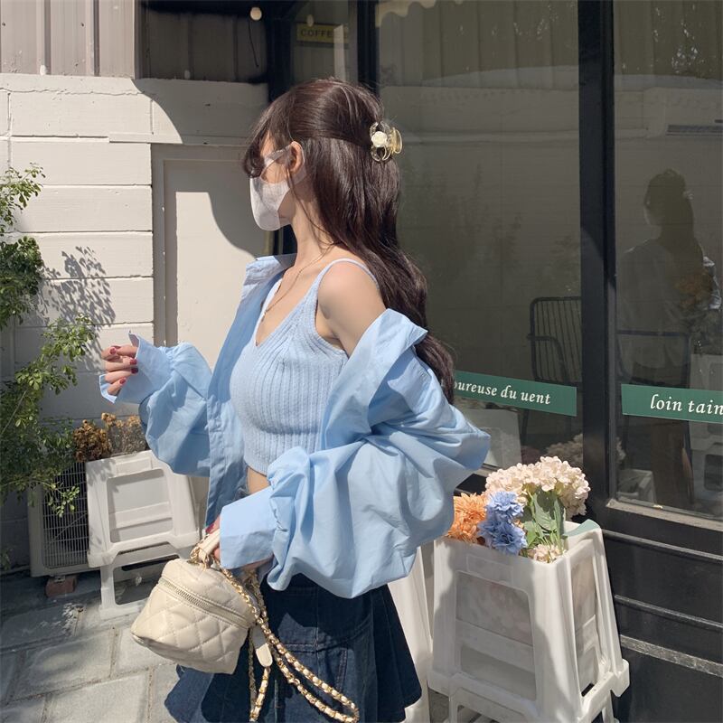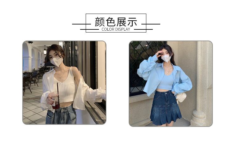 色:青いシャツワンピース,白いシャツのワンピース,ブルースリングシングルピース,ホワイトスリングシングルピース
