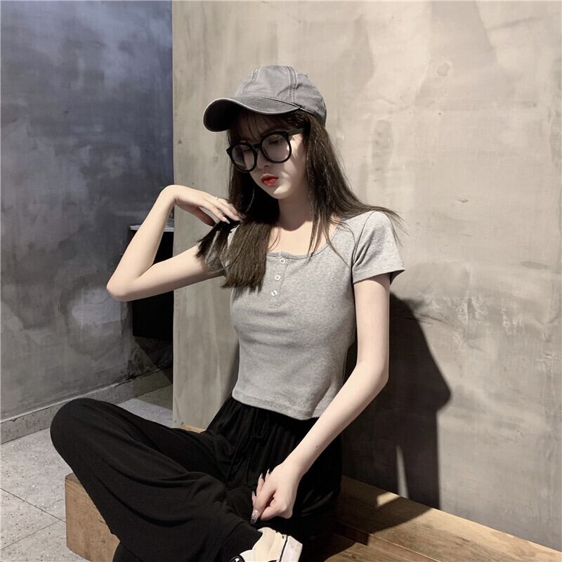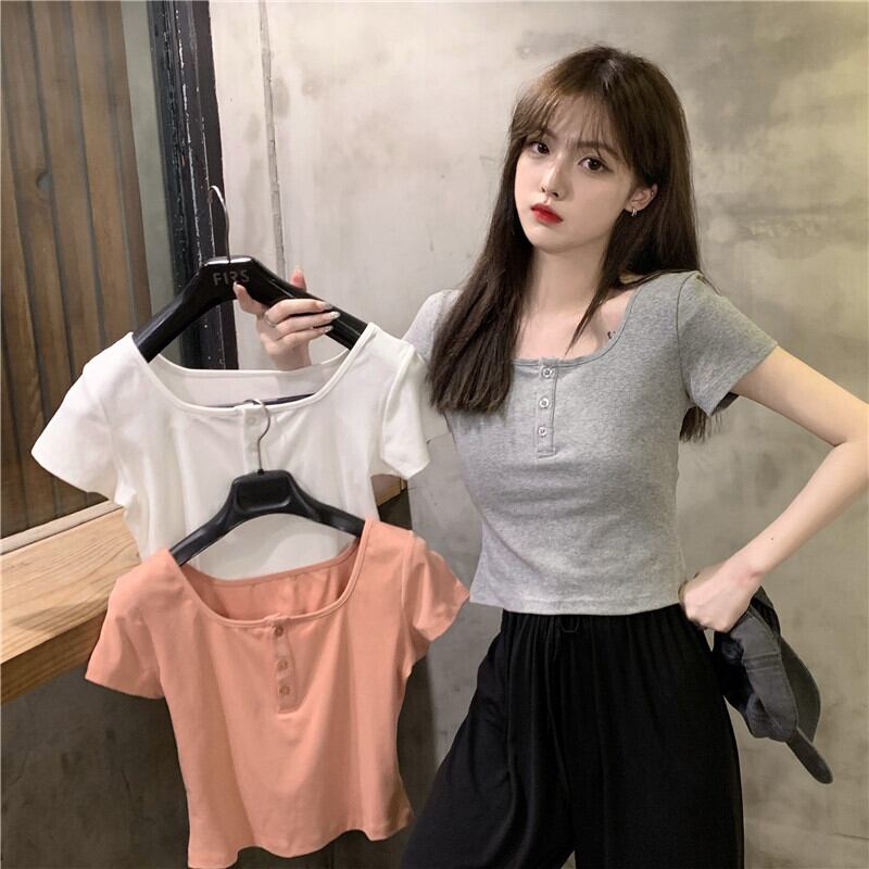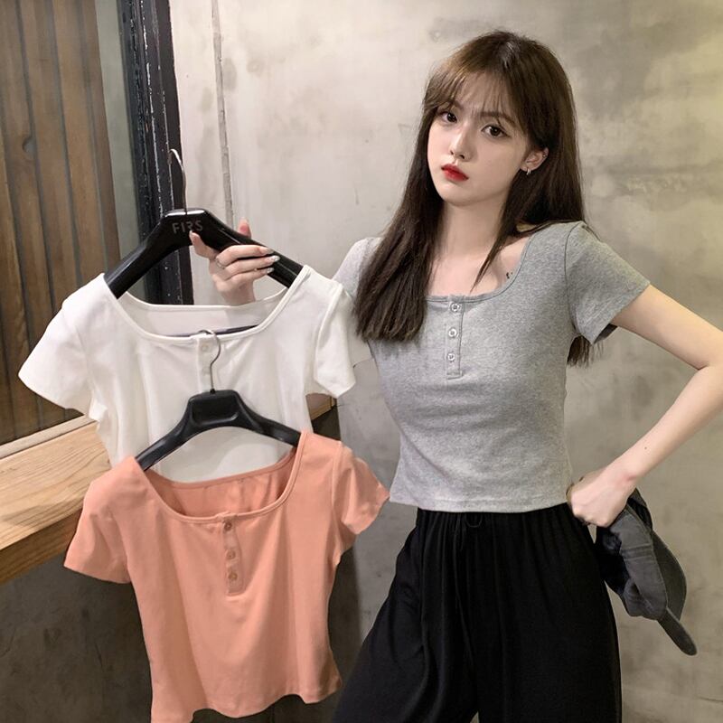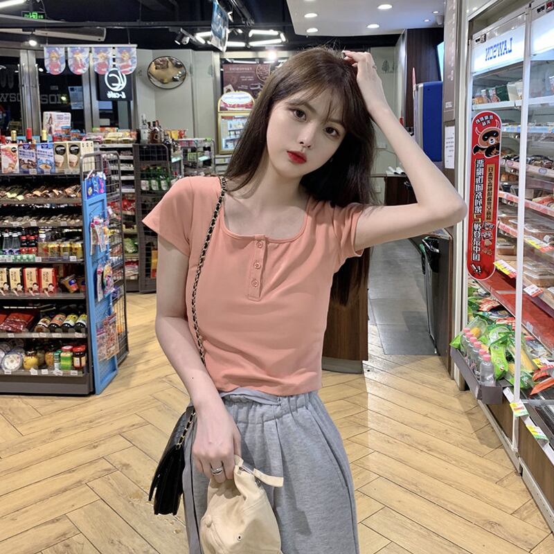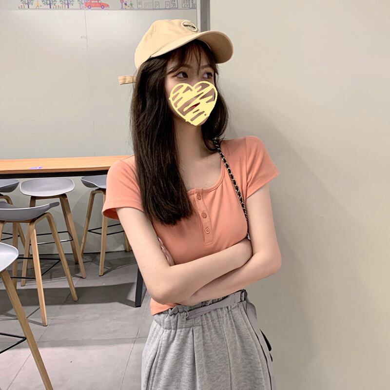 ショートTシャツ夏服ハイウェストウェストクロップドトップス 大人ガーリー スウィート キュート カジュアル 夏物 ウエスト SYJ69845693397