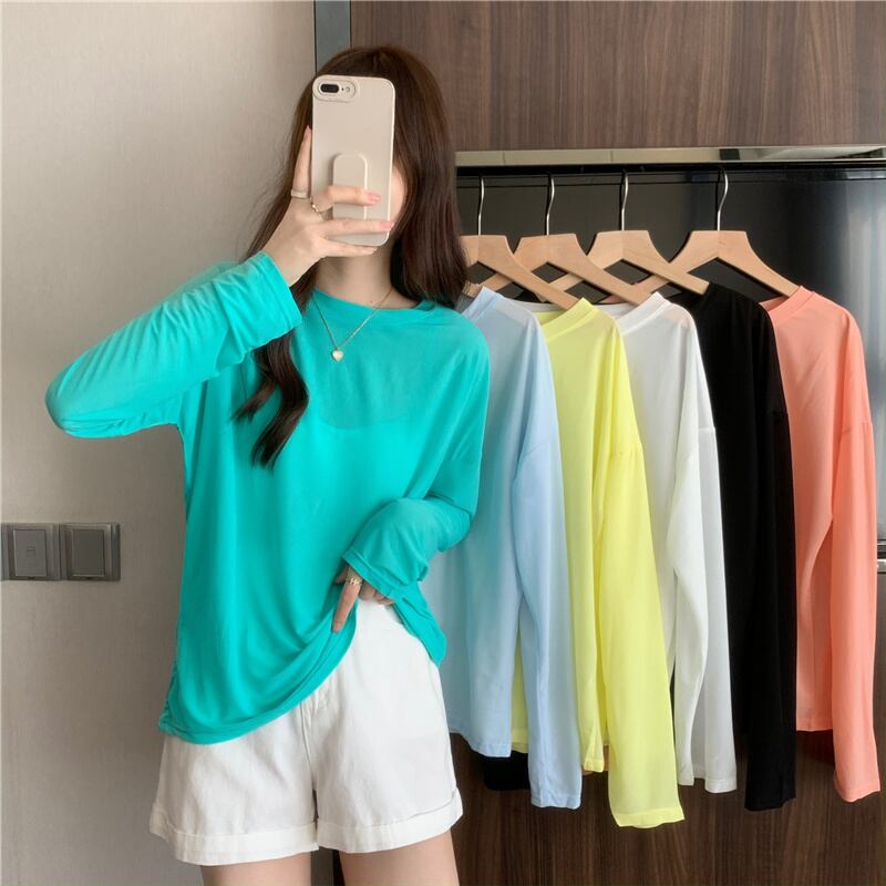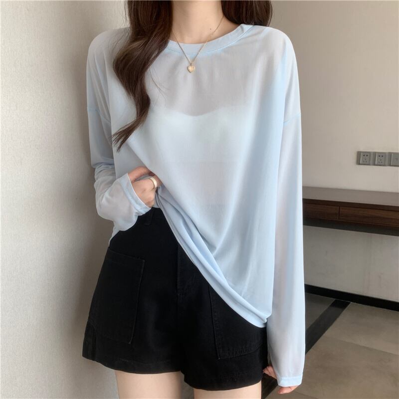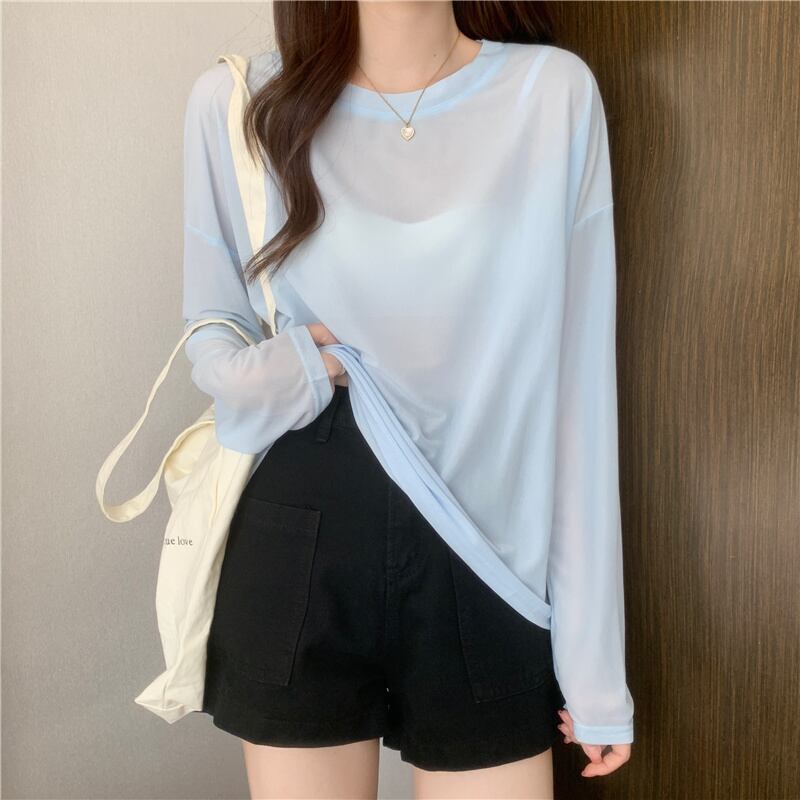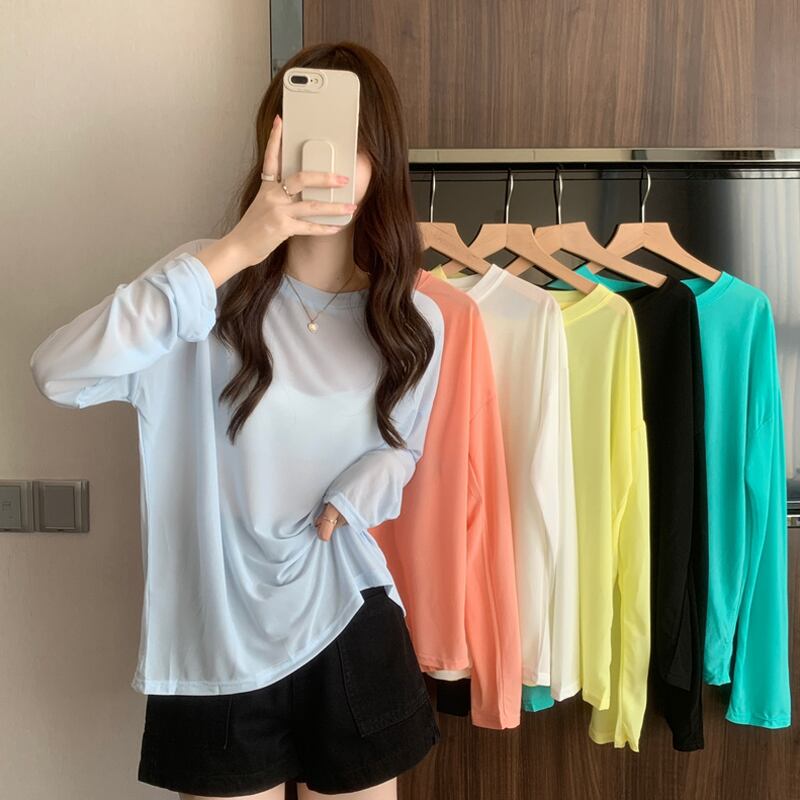 ブルーTシャツスプリング薄手ルーズトップス ロング 春物 長袖 SYJ36222921883