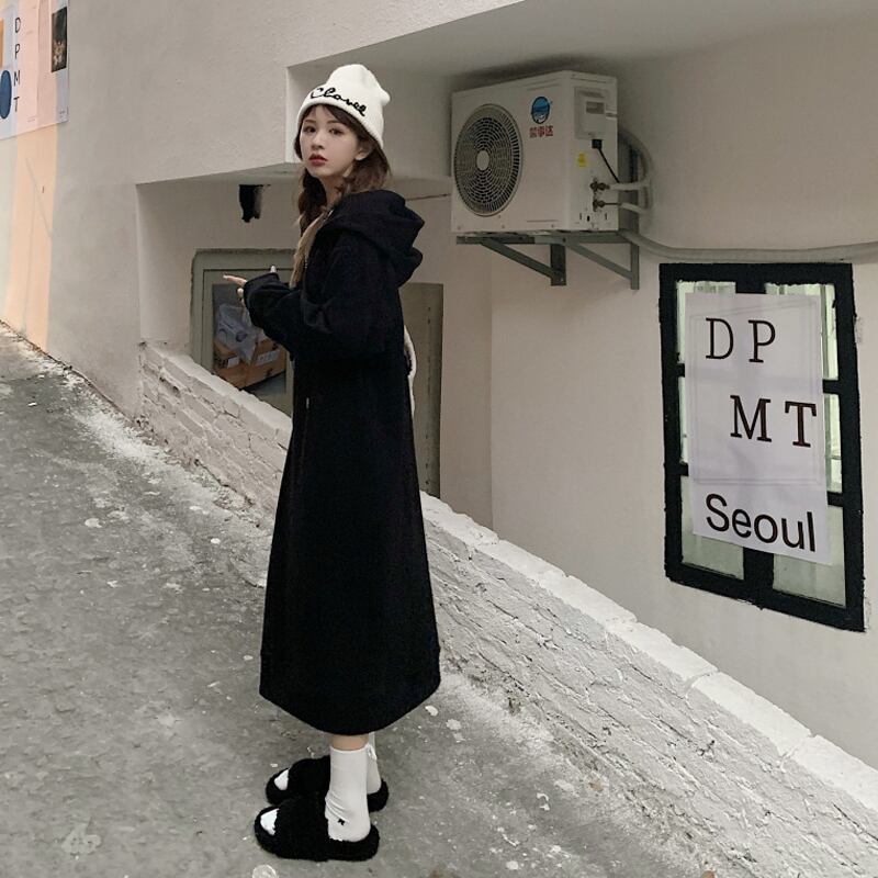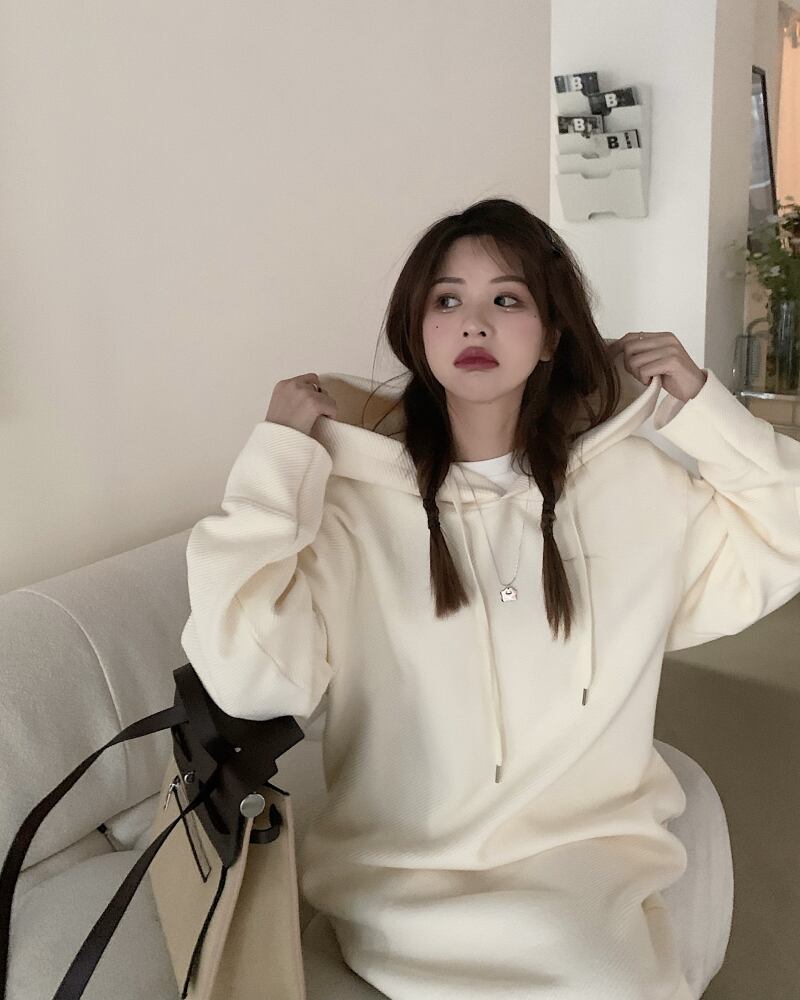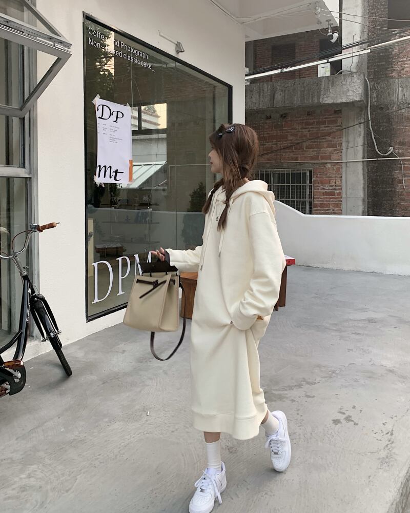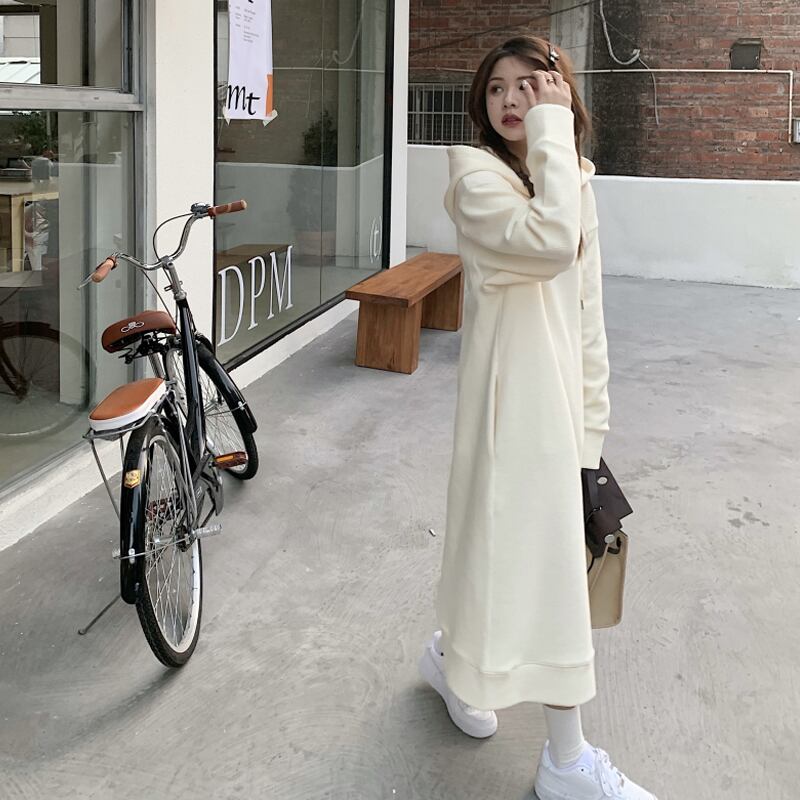 フードセーター ワンピーススプリング秋物ルーズロングスカート 大きめサイズ 春物 オータム SYJ31145825543