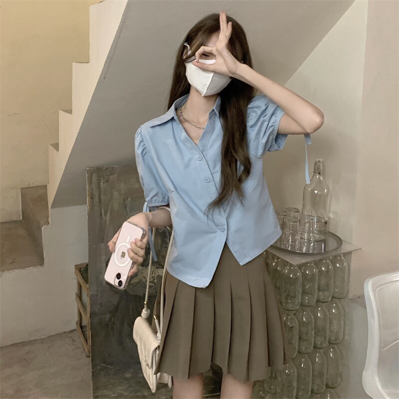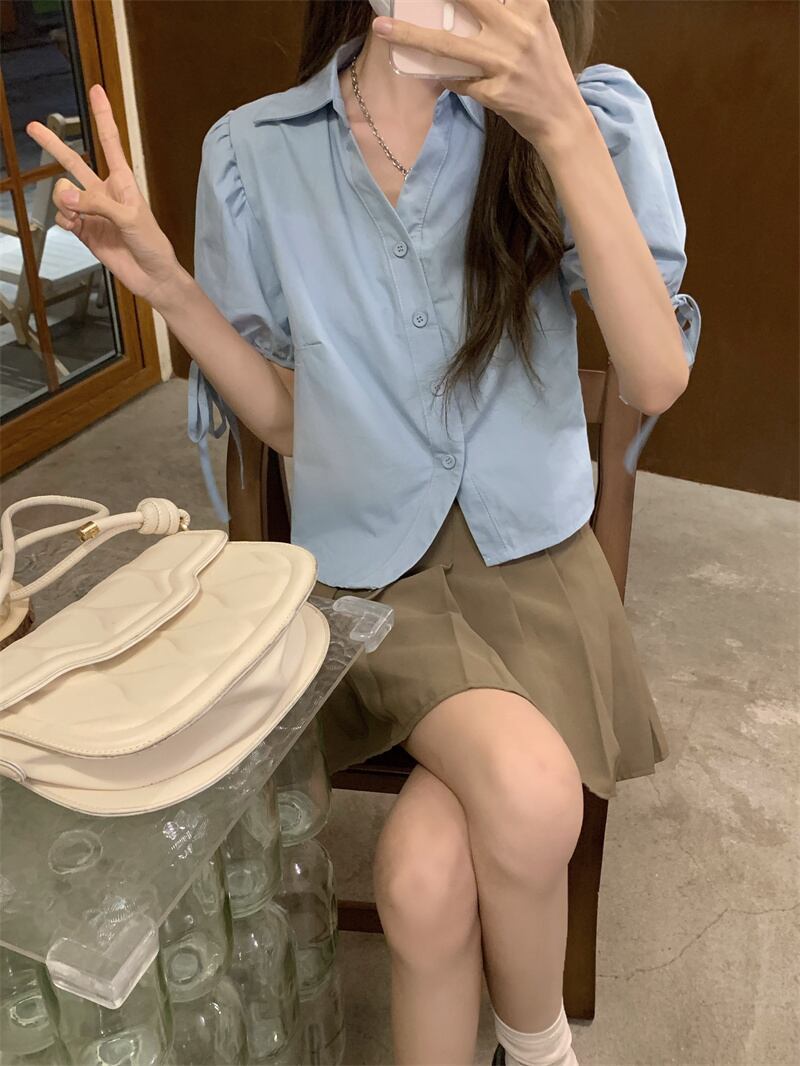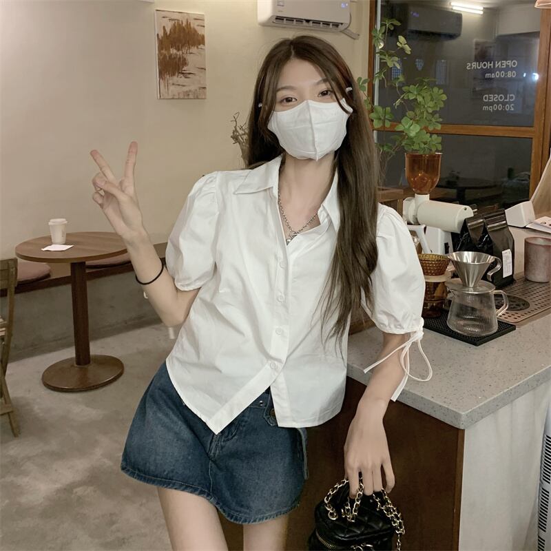 ホワイトVネックショートトップス シャツ 夏服スリーブ 夏物 SYJ72459992349