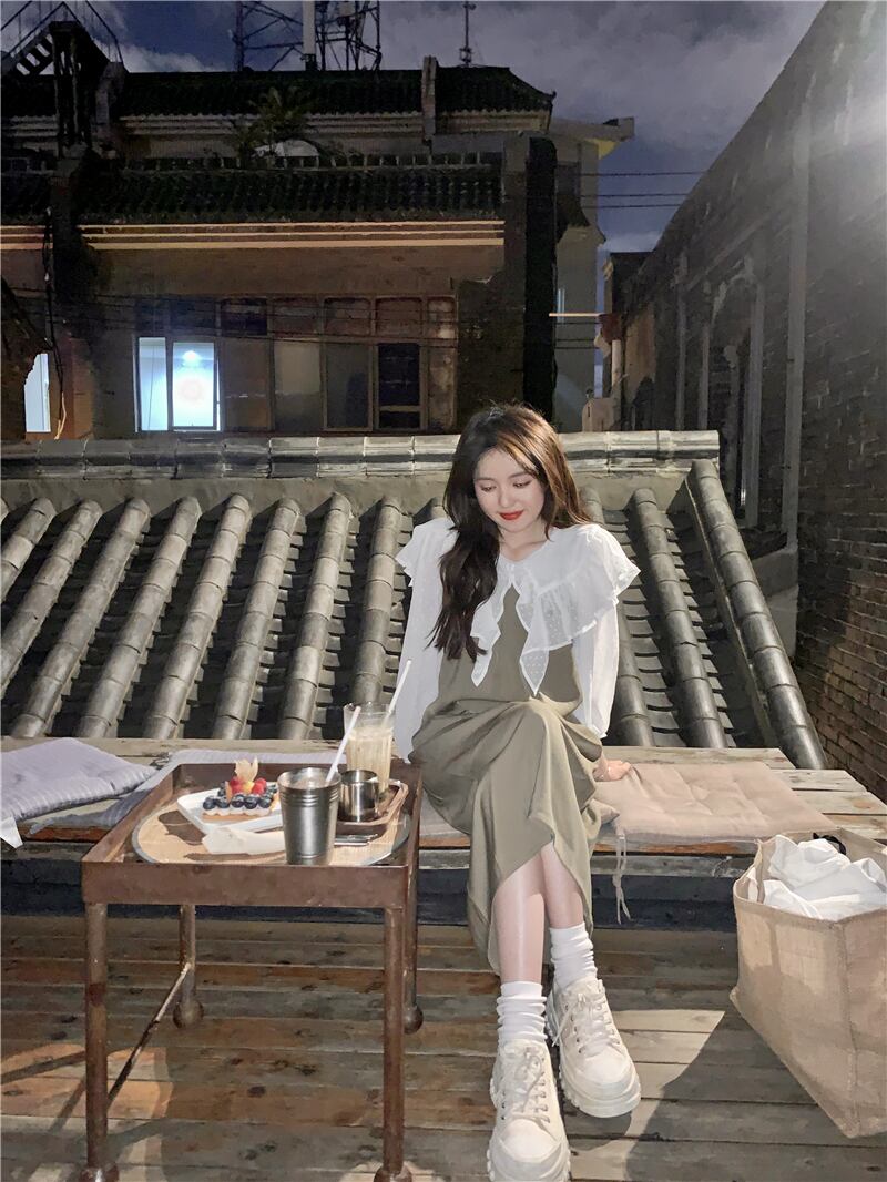 色:ワンカラードレス,白いシャツのワンピース