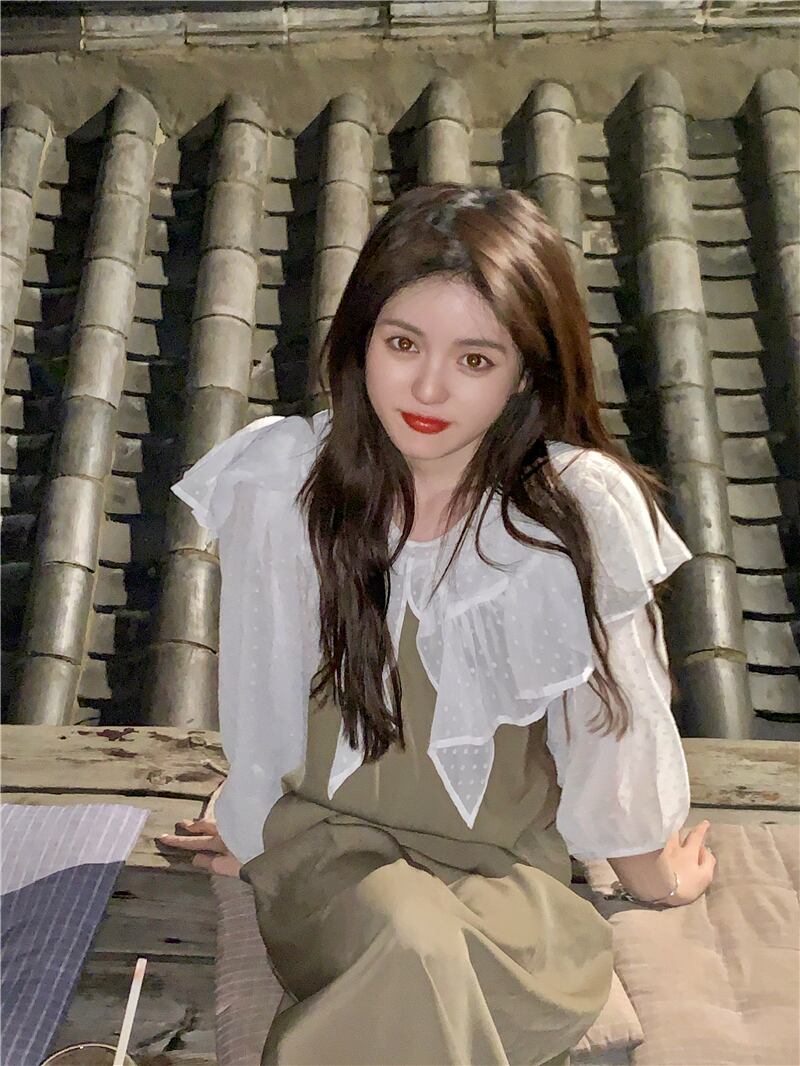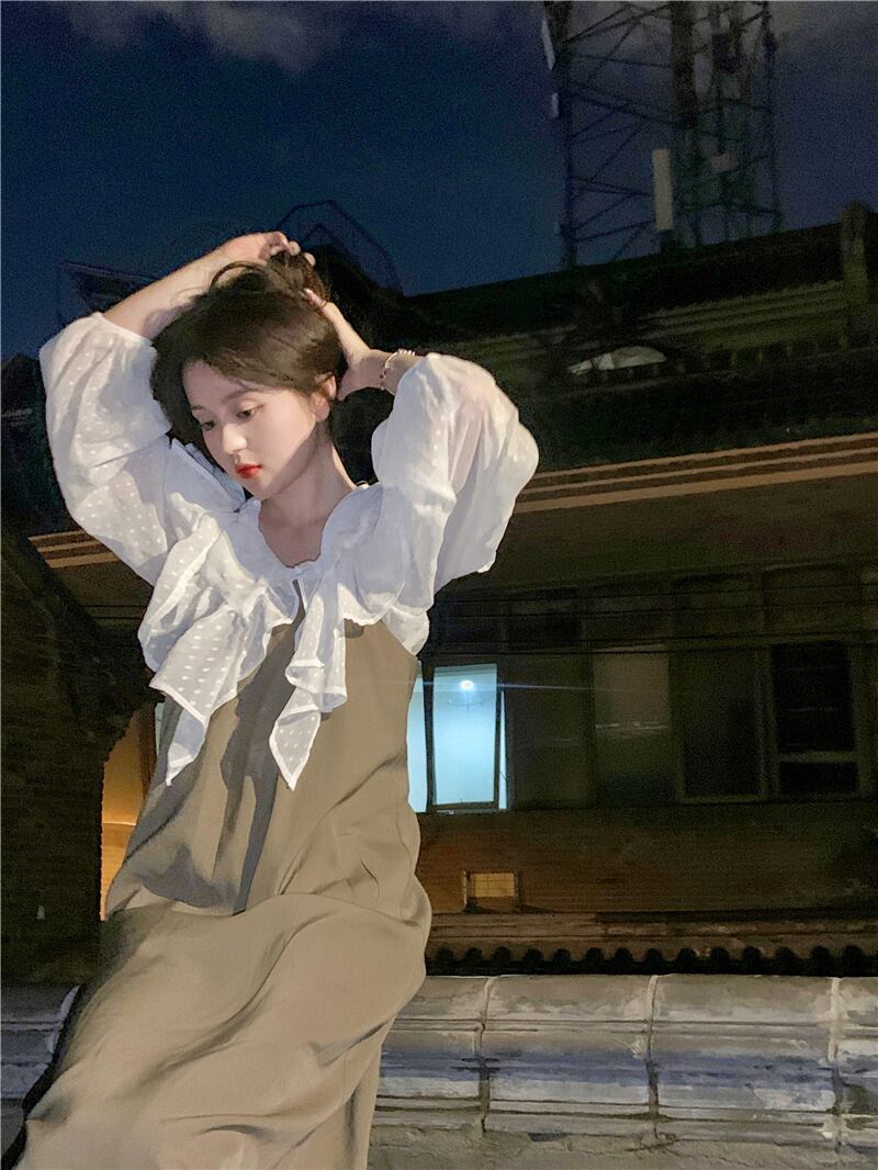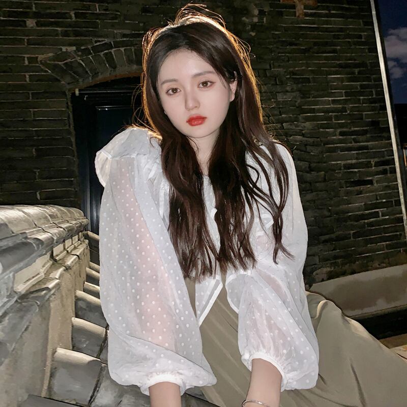 ホワイト水玉シャツ スプリング薄手トップス 春物 SYJ27573591229