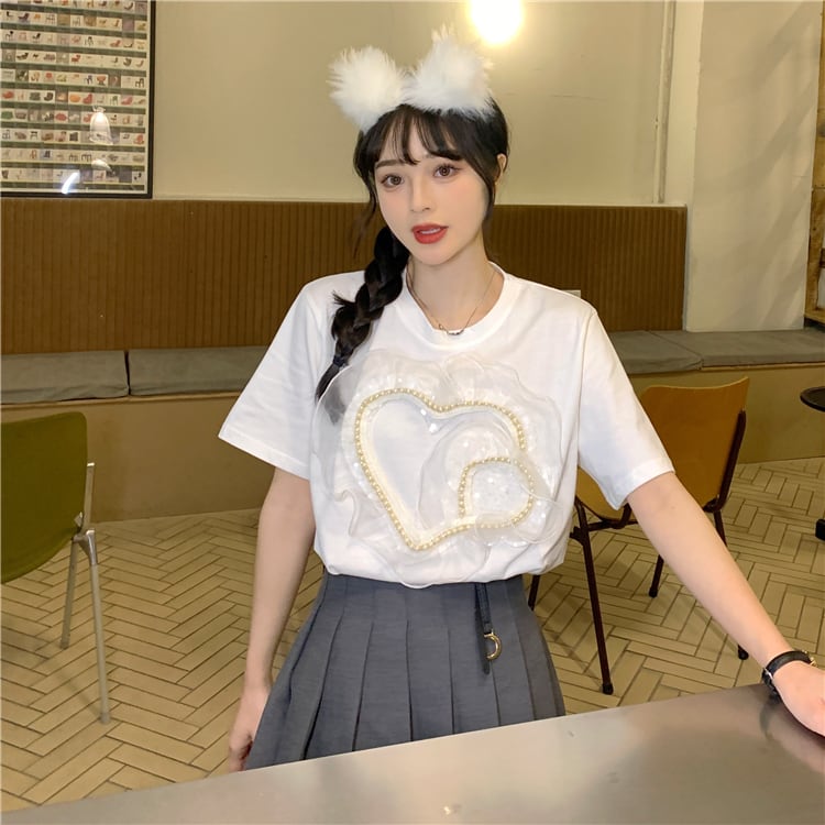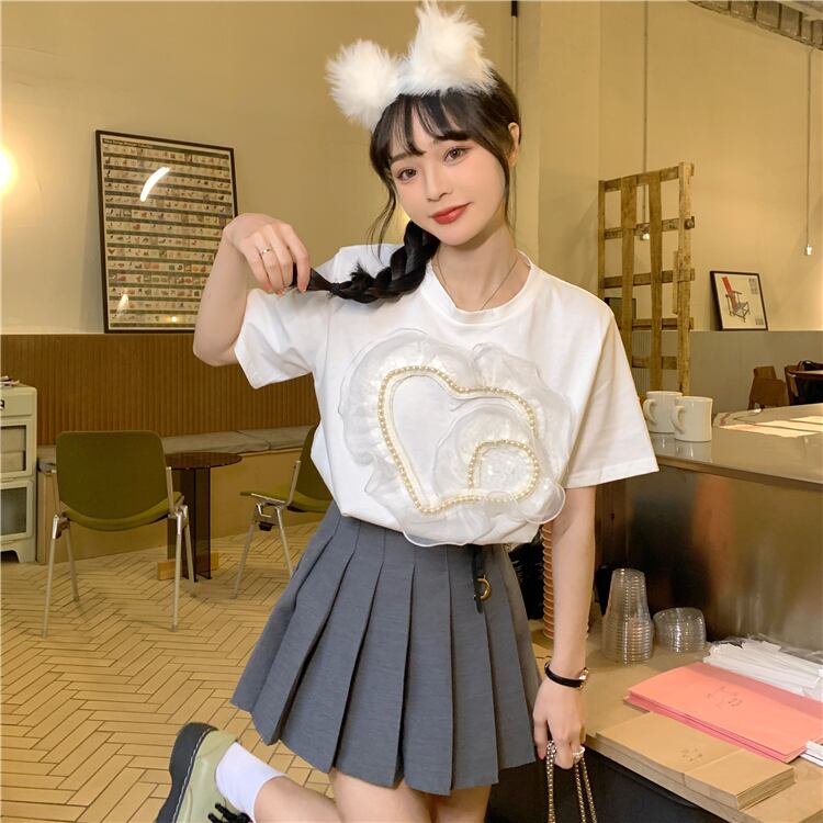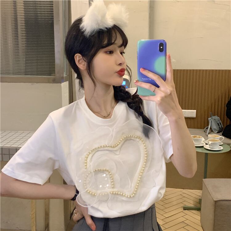ホワイトTシャツ夏服トップス NEW レッド 夏物 SYJ89365632099