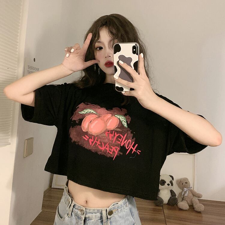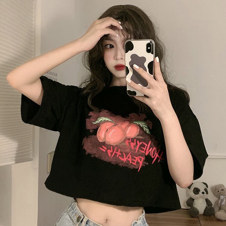 ブラックショートTシャツ夏服スタンダードルーズトップス NEW レトロ 夏物 SYJ23763426499