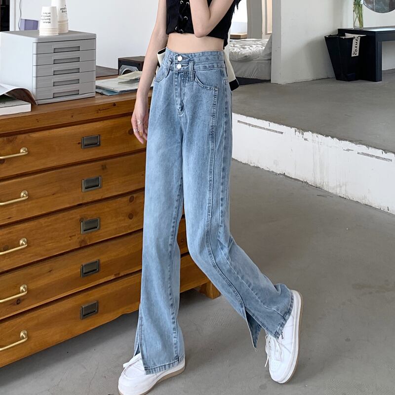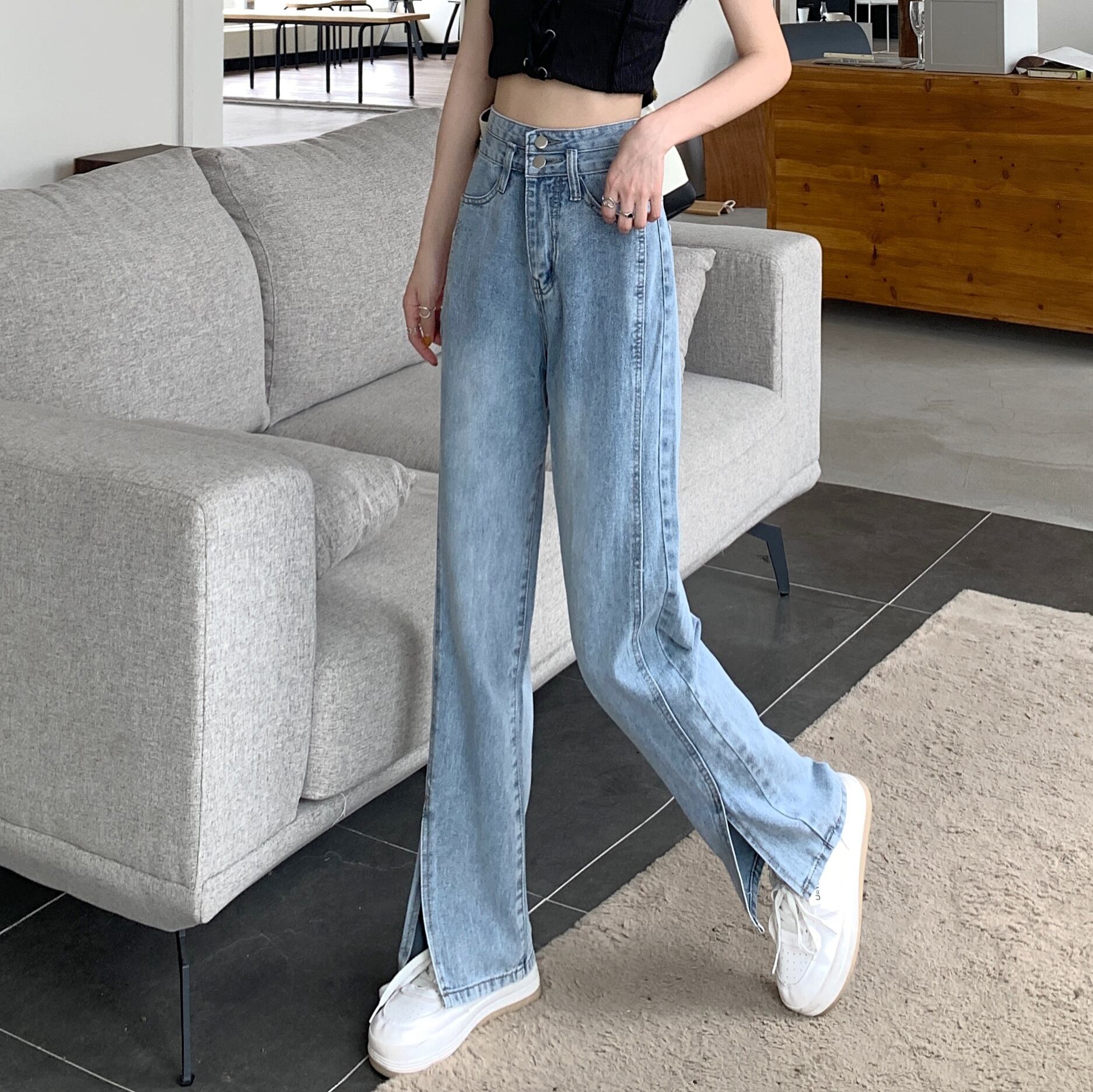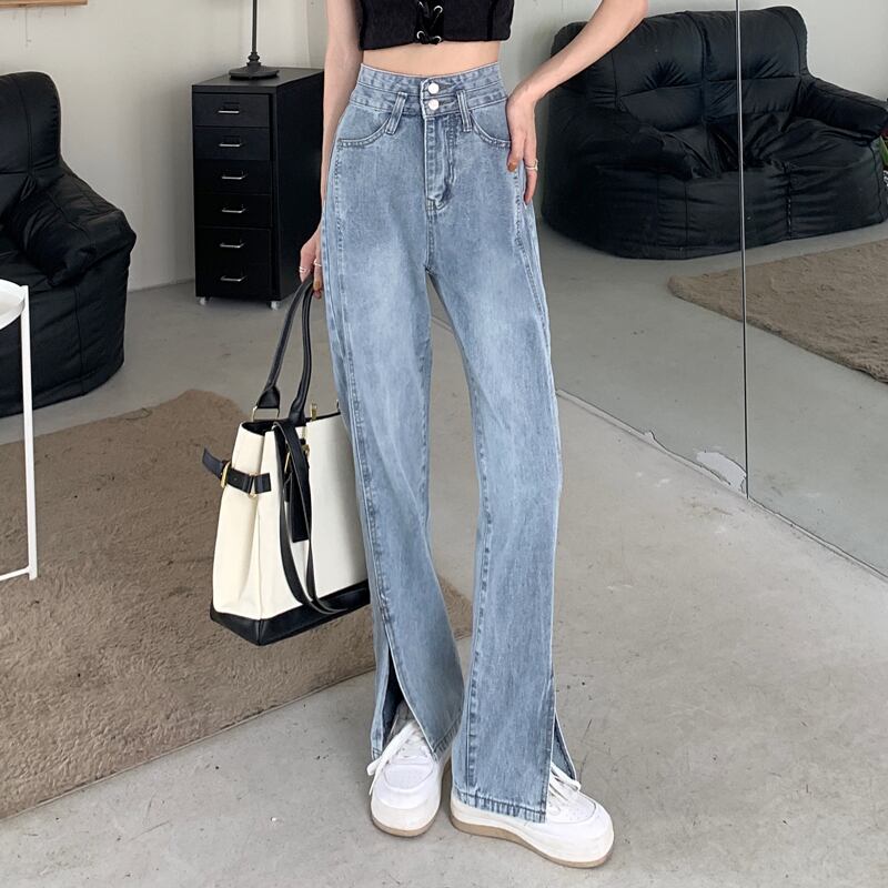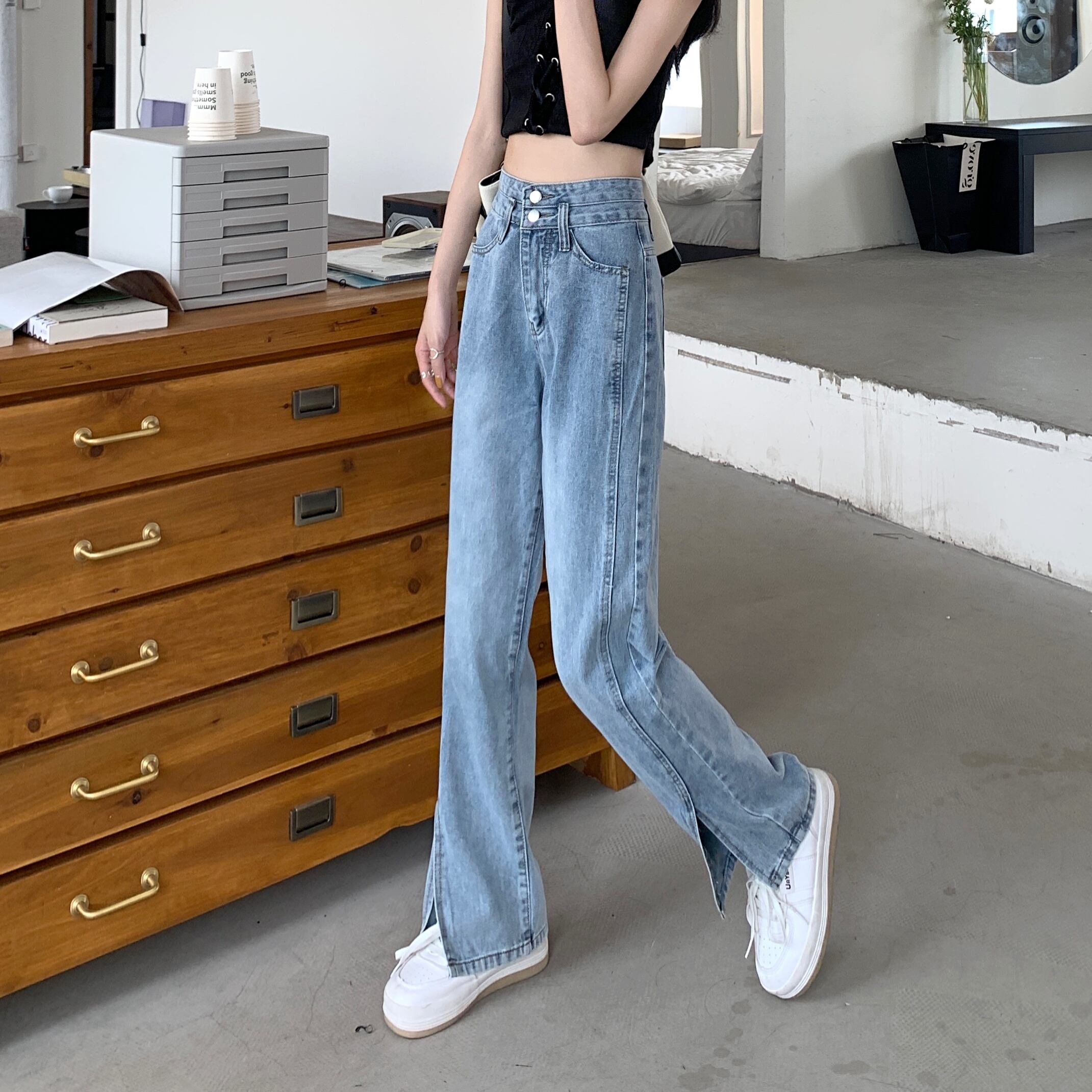 スリットジーンズ 夏服薄手ハイウェストウェストルーズワイドレッグパンツ 夏物 ワイドパンツ ウエスト SYJ24093973151