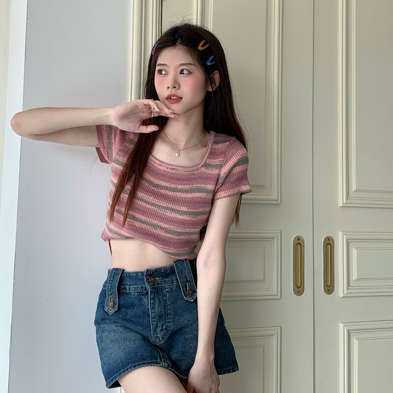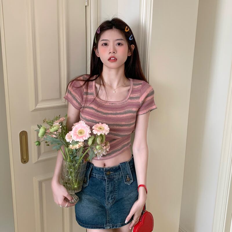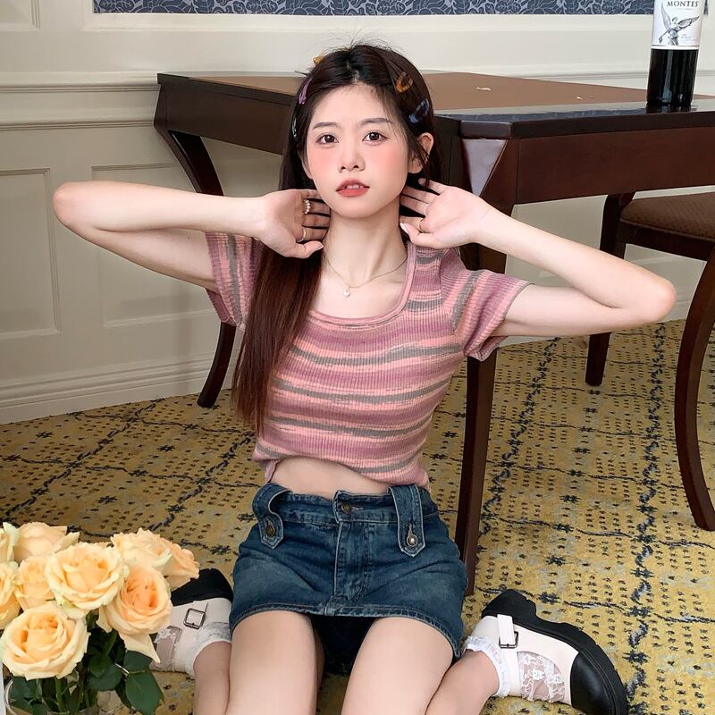 ニットショートTシャツ夏服スリムトップス NEW 夏物 SYJ4482310848