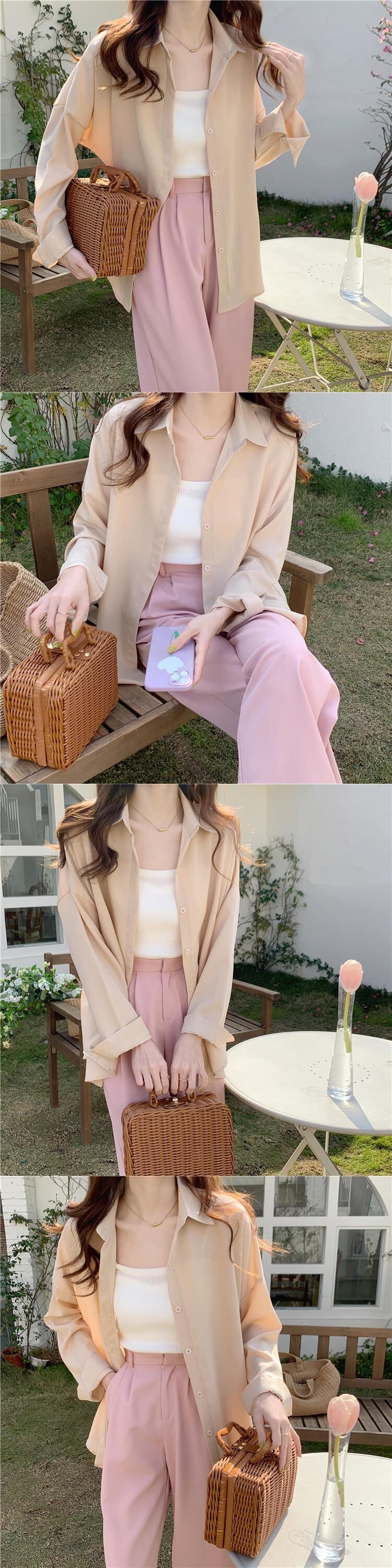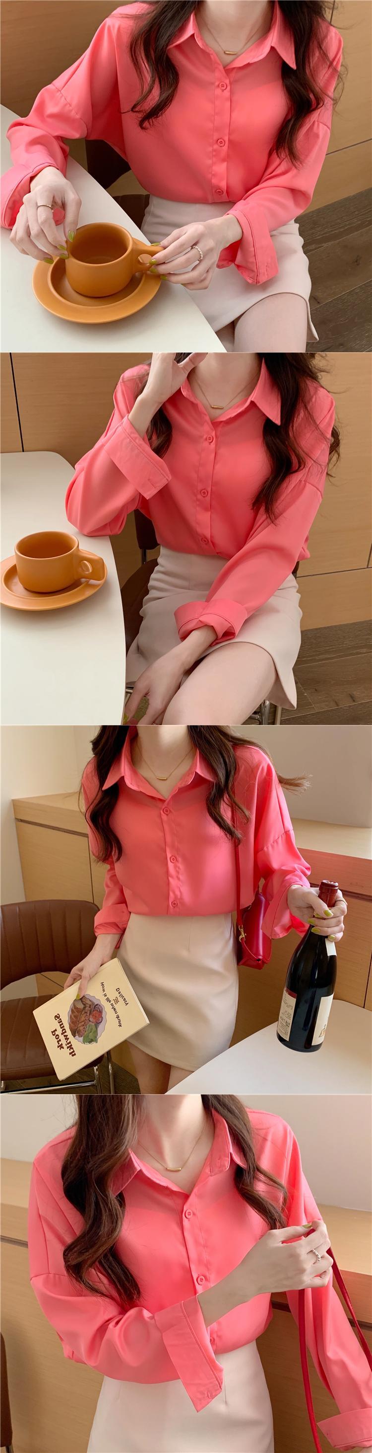 シャツ 夏服韓国ファッションスタイル ロング ピンク 夏物 長袖 SYJ90697155101
