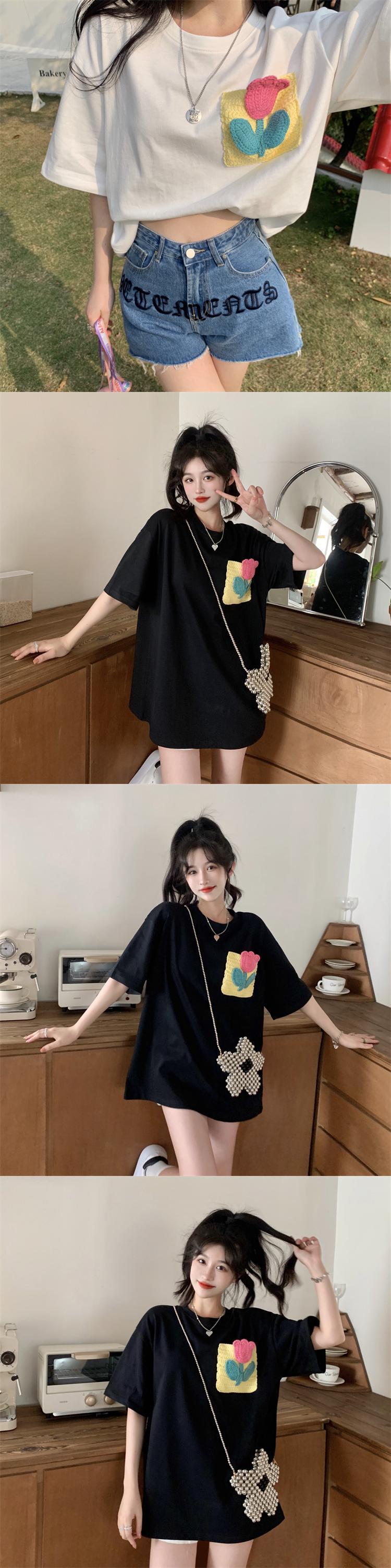 ホワイトTシャツ夏服ルーズトップス コットン 夏物 SYJ76993514041