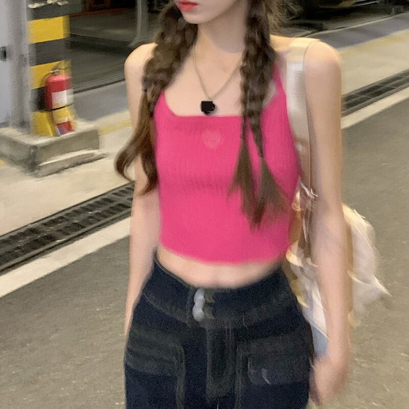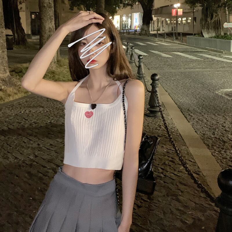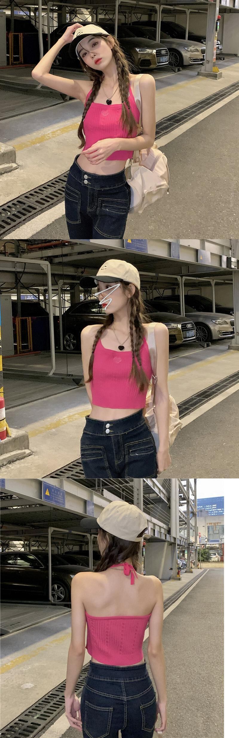 レッドホルターニット夏服トップス ショートゆったり 大人ガーリー スウィート キュート カジュアル 夏物 SYJ67353110393