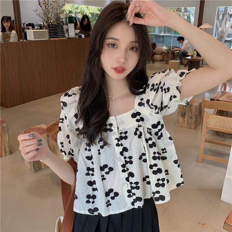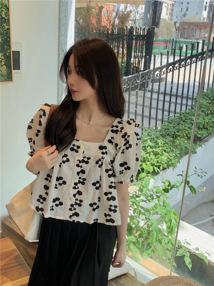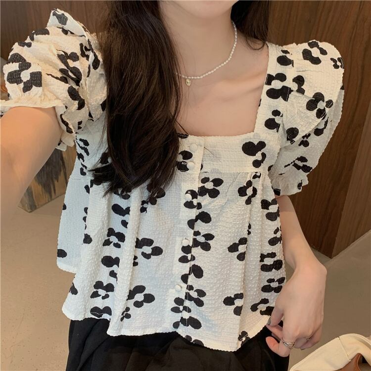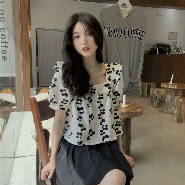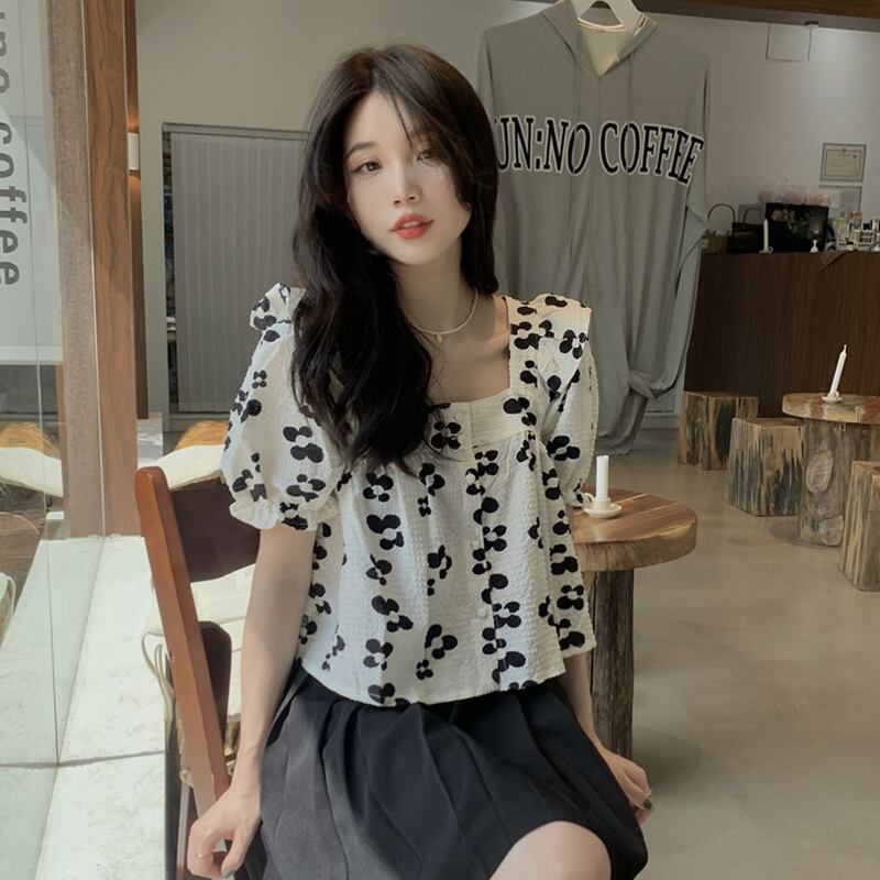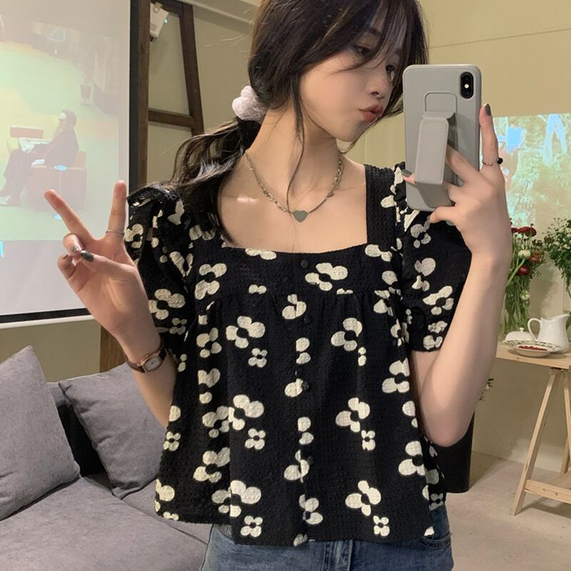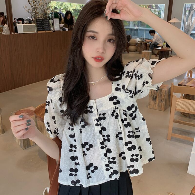 フローラルスリーブシャツ 夏服ショートトップス 大人ガーリー スウィート キュート カジュアル 夏物 花柄 スクウェア SYJ59087300280