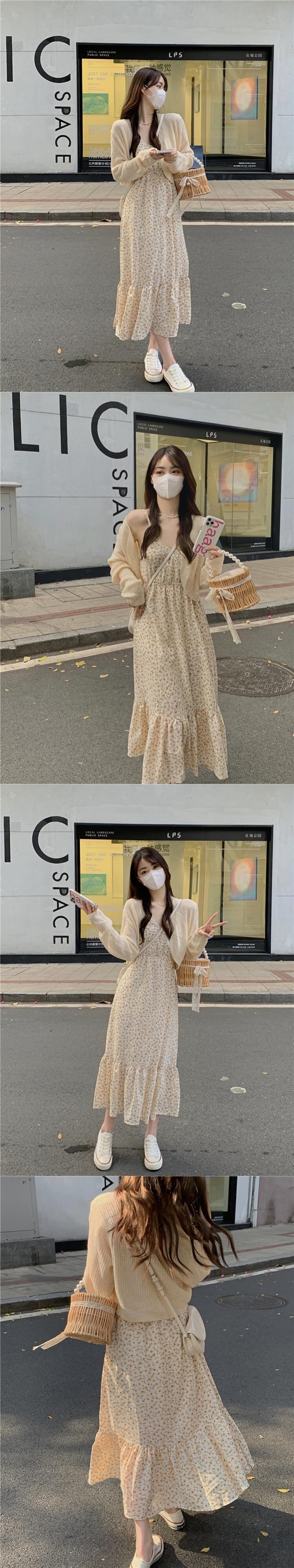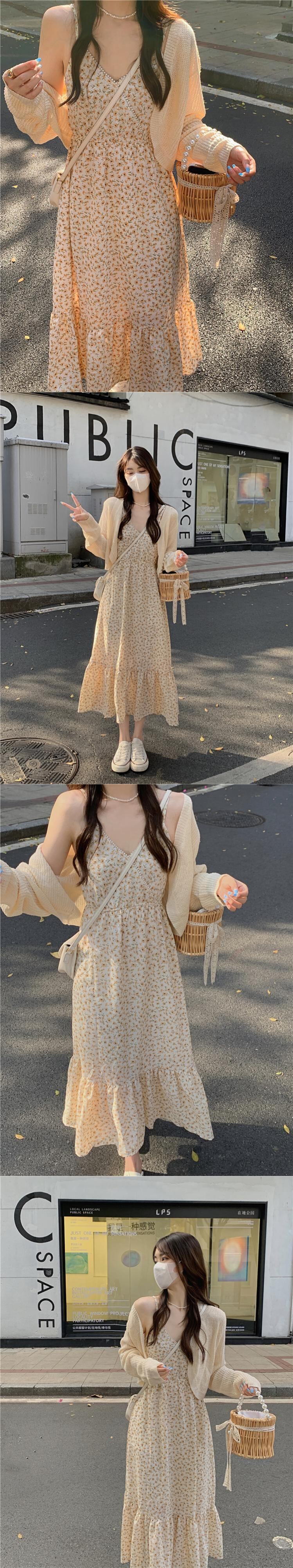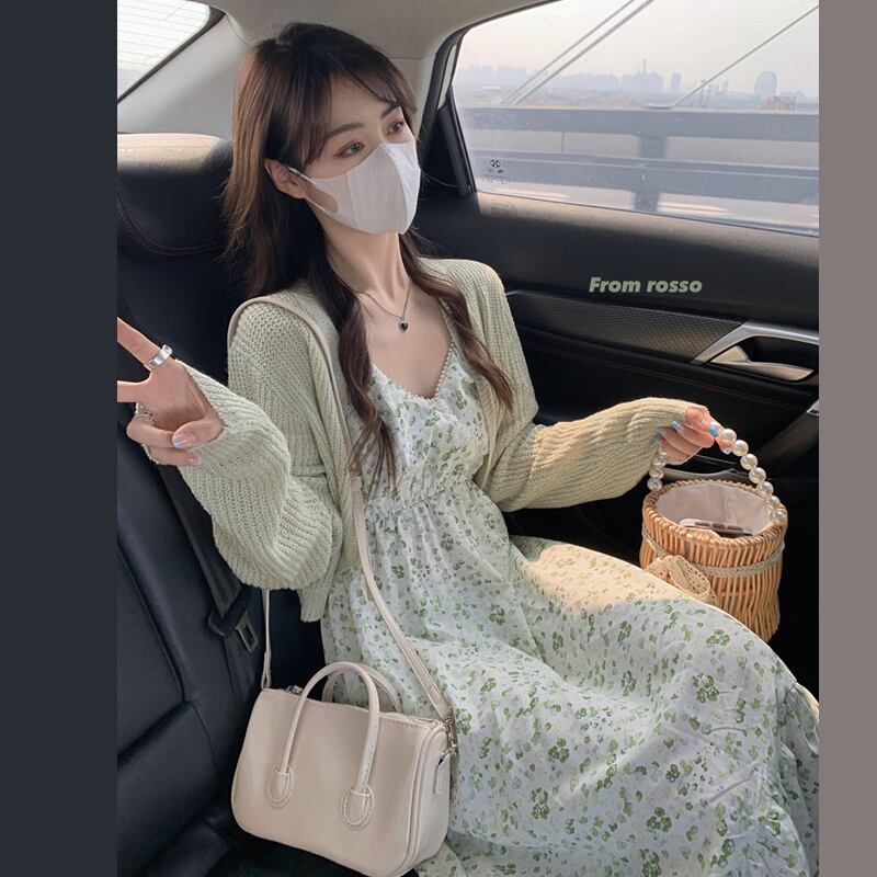 グリーンフローラルワンピースレディース夏服ロングスカート 大人ガーリー スウィート キュート カジュアル 夏物 花柄 SYJ40427741508