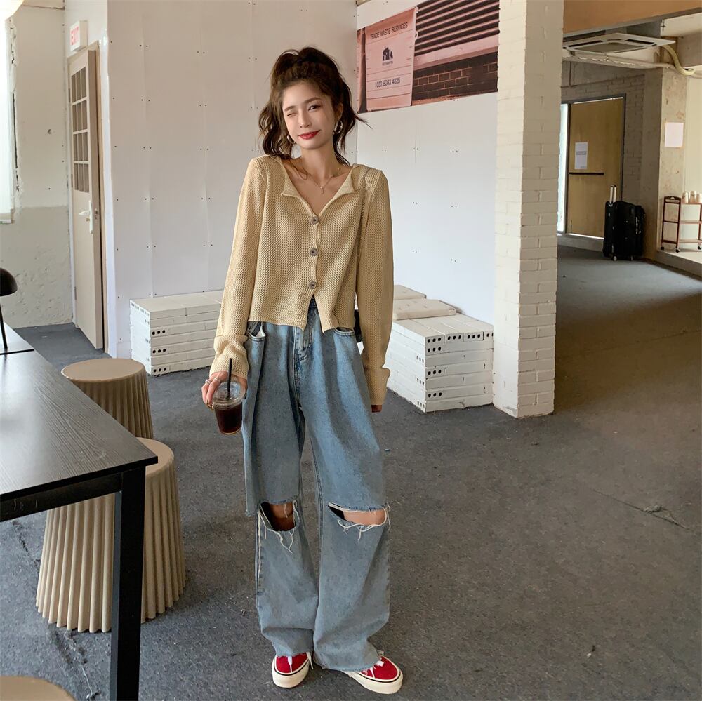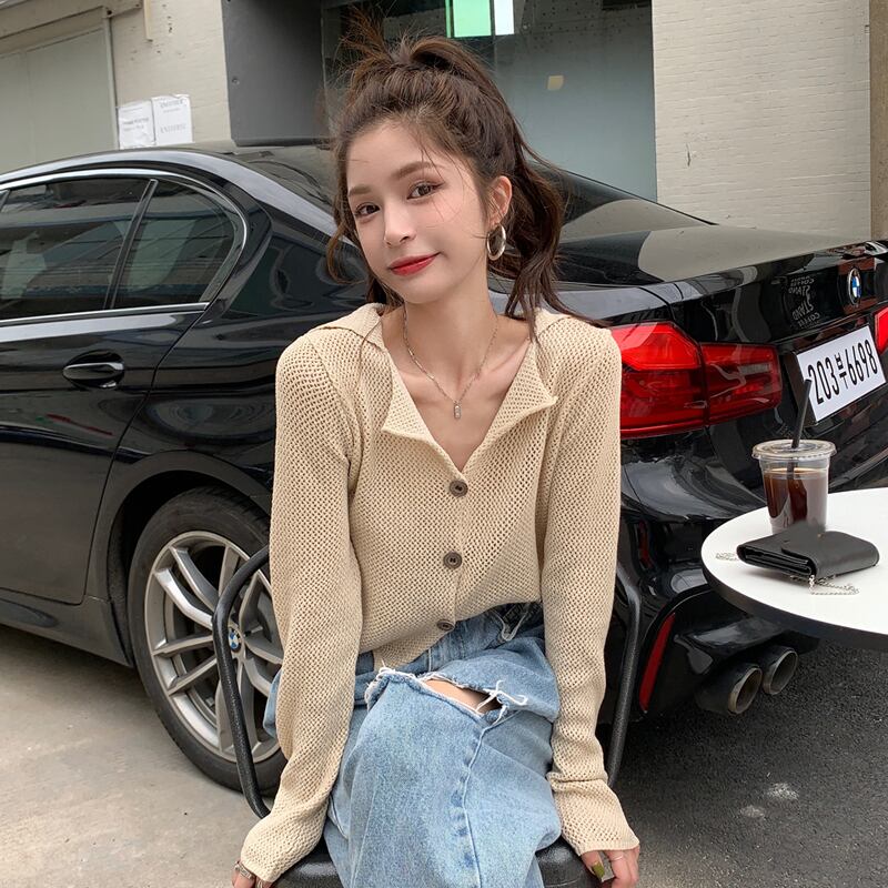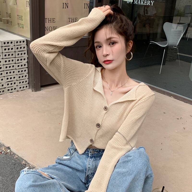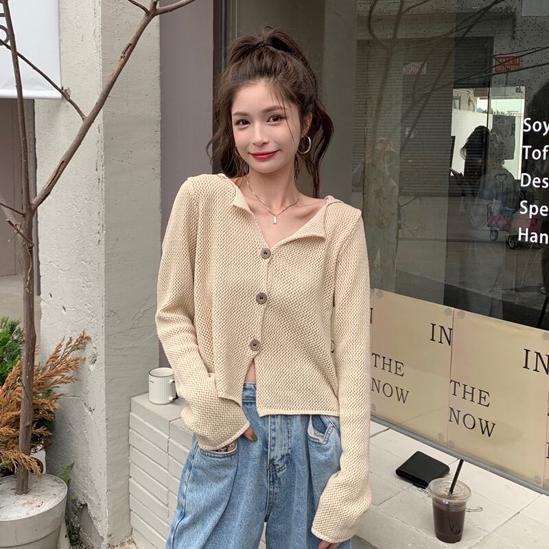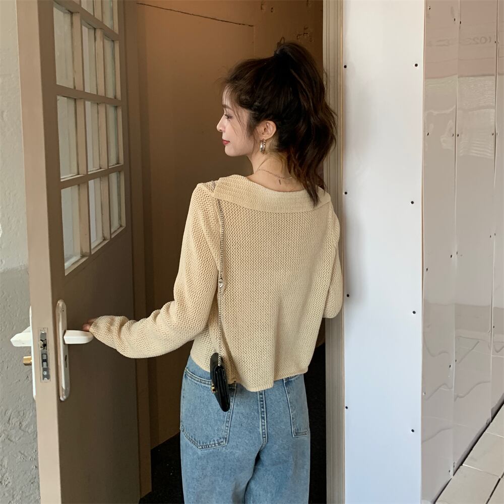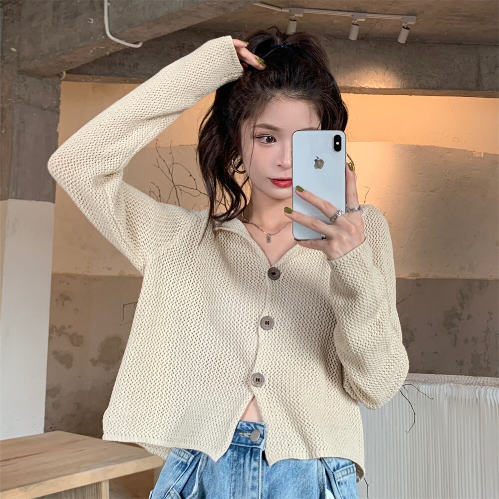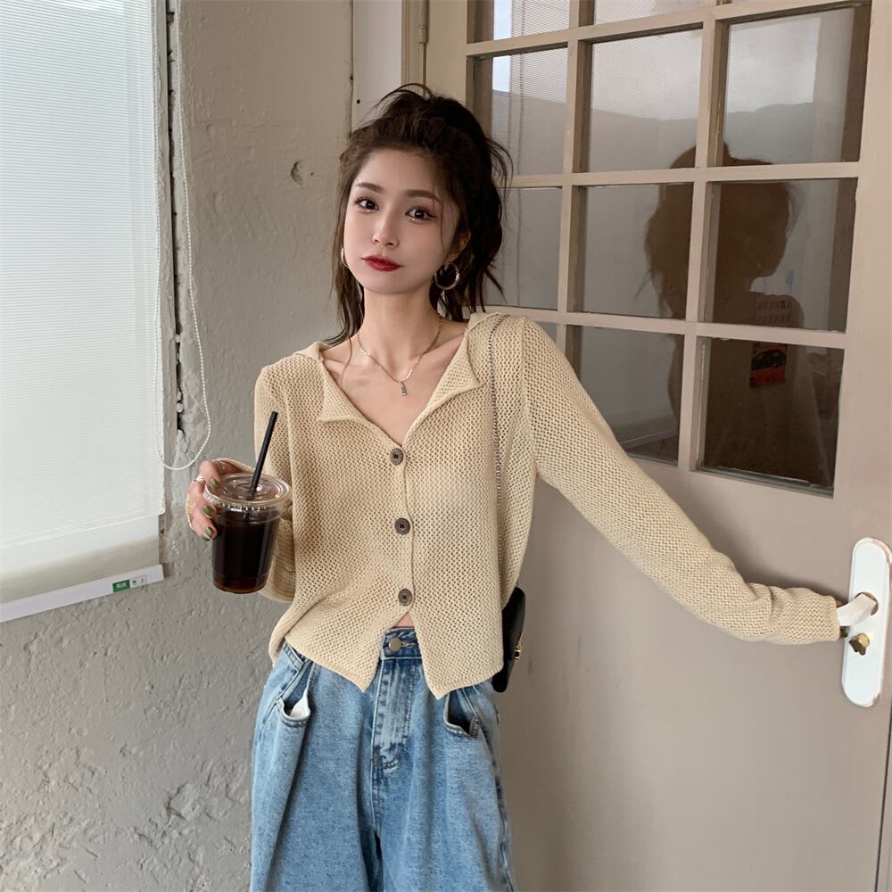 ニットカーディガンスプリング薄手ショートトップス ロング 春物 長袖 SYJ58822169424