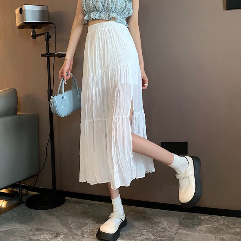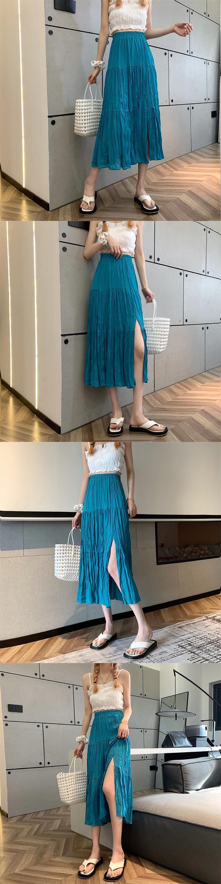 ブラックスリットスカート 夏服ハイウェストウェストAラインロング 夏物 ウエスト SYJ8274492798
