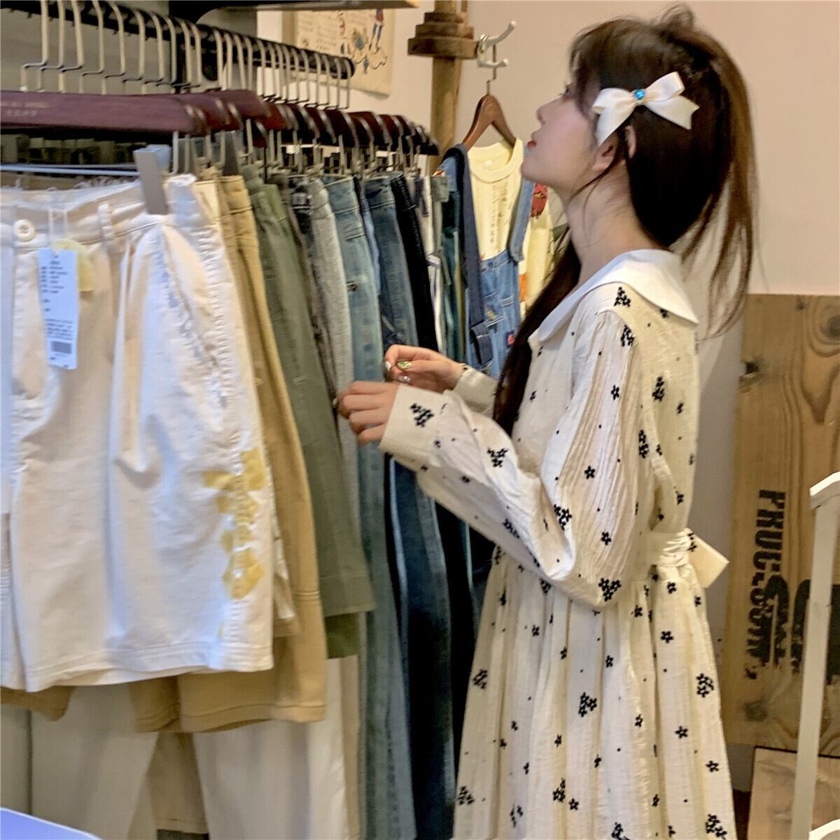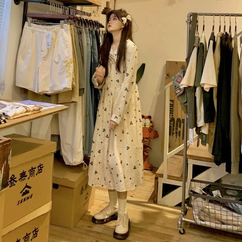 ロングフローラルワンピーススプリングスカート 大人ガーリー スウィート キュート カジュアル 春物 花柄 長袖 SYJ38889632225