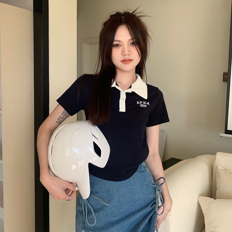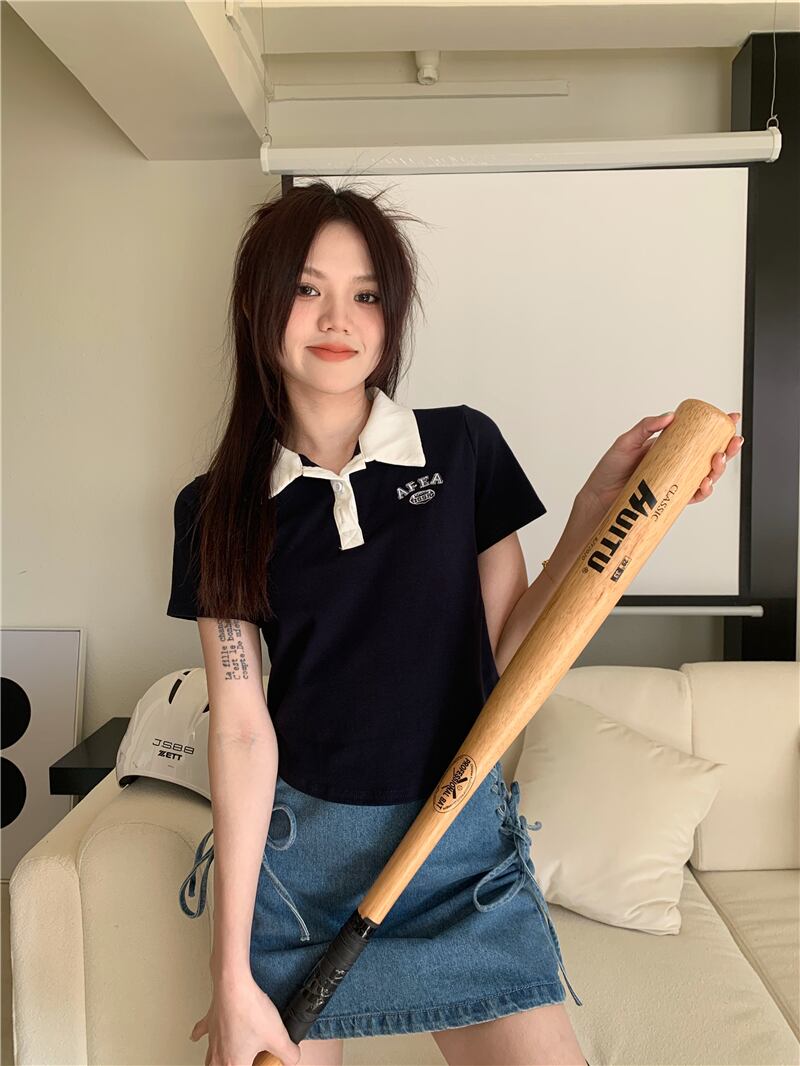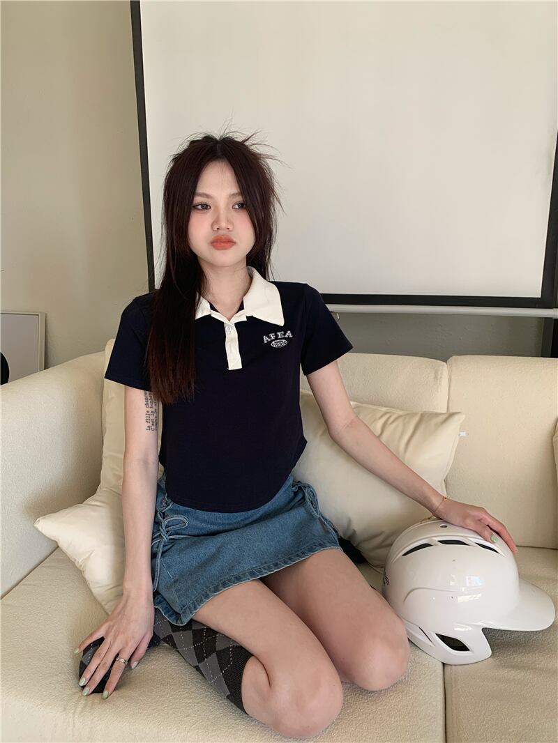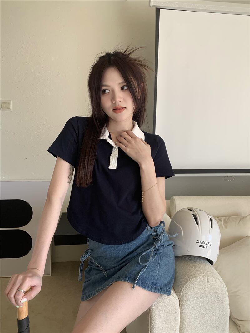 スタンダードカラーショートTシャツ夏服トップス レトロ 夏物 SYJ44461798886