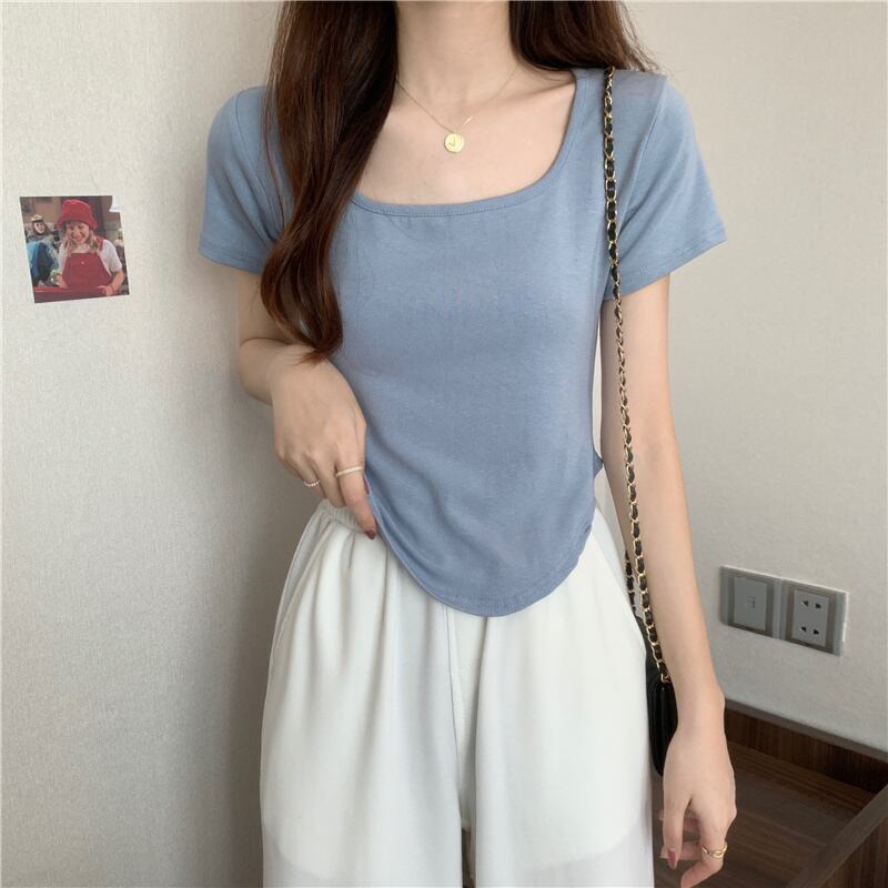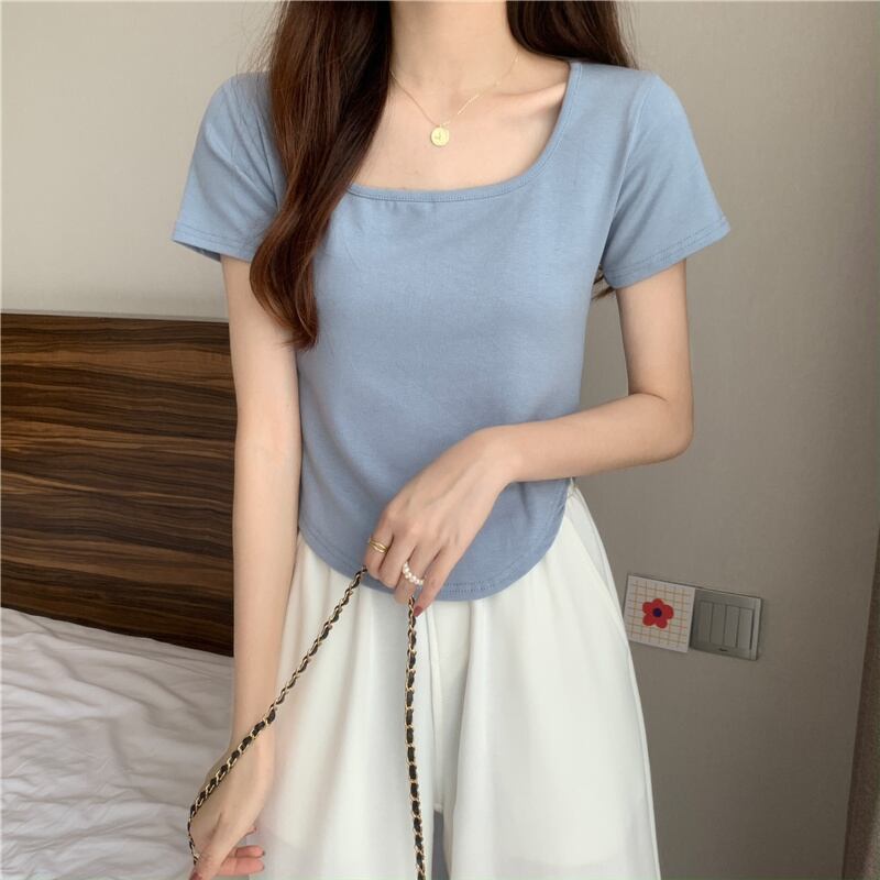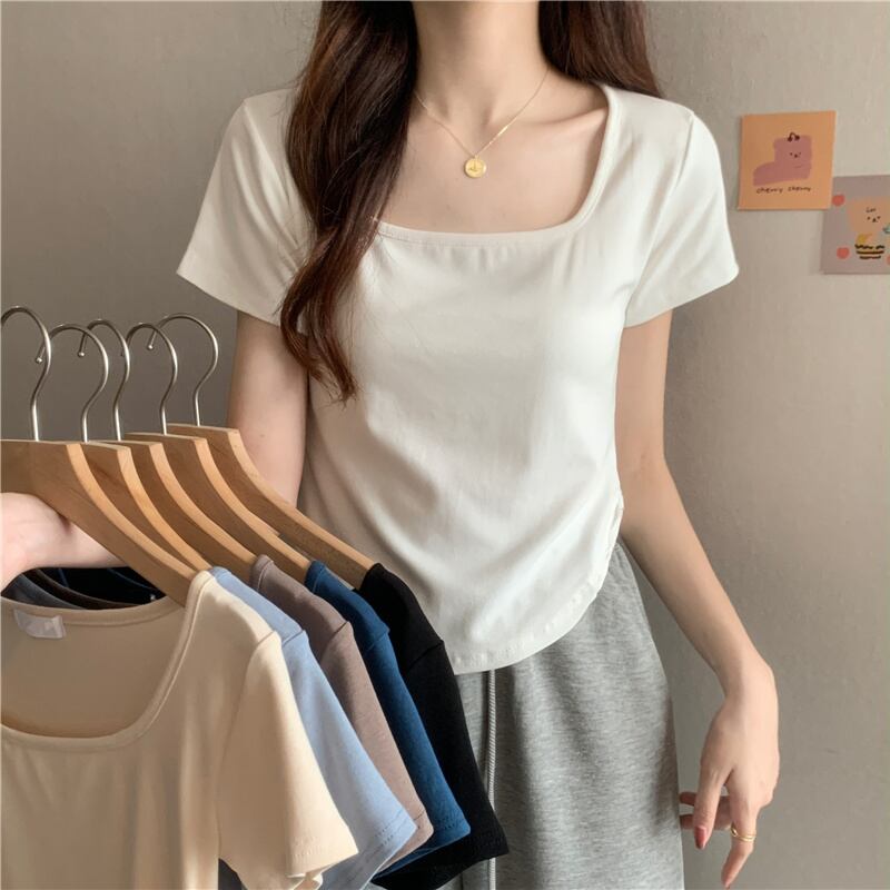 ホワイトショートTシャツ夏服トップス 大人ガーリー スウィート キュート カジュアル 夏物 ピュア スクウェア SYJ16814897045