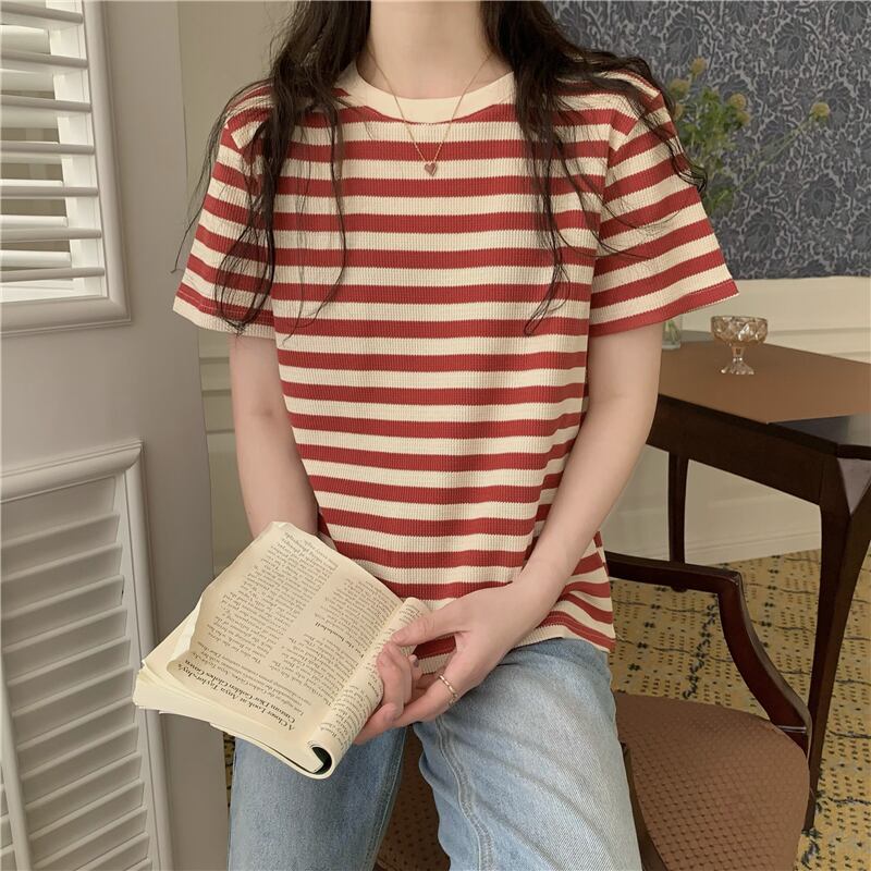 ストライプTシャツ夏服韓国ファッショントップス NEW 夏物 SYJ71937279617