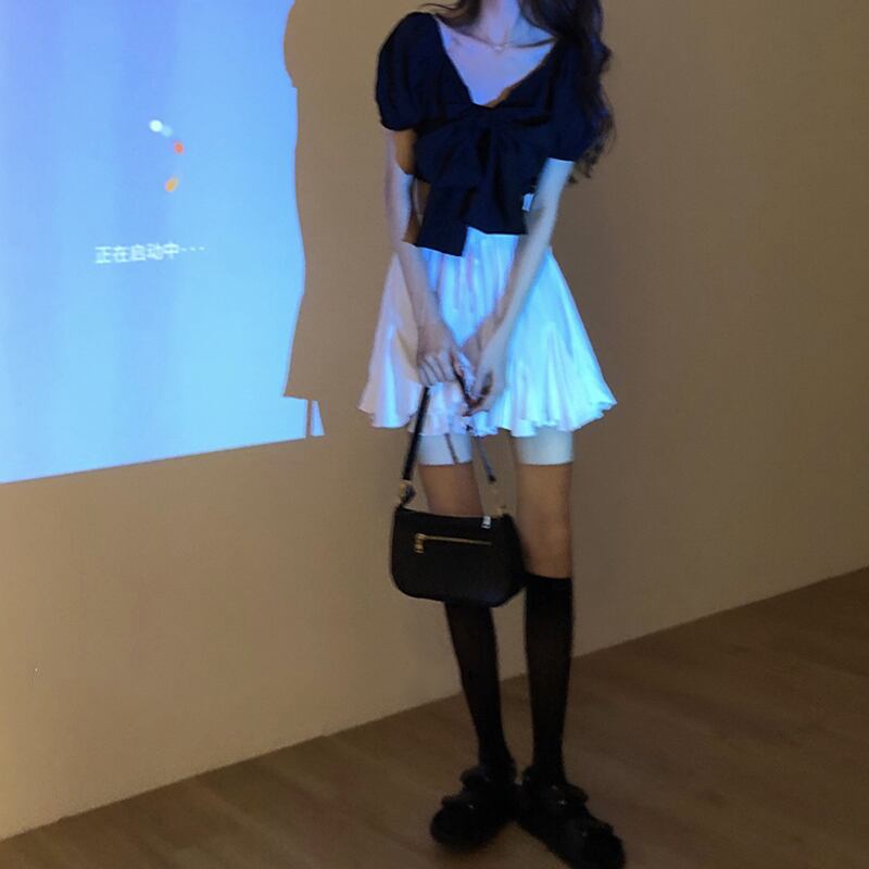 色:ブラックトップシングルピース,白いハーフスカートワンピース