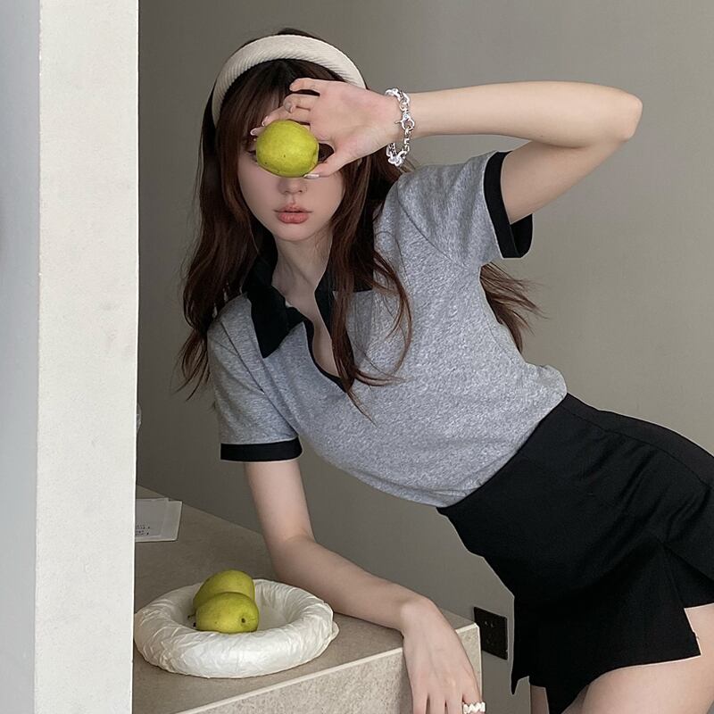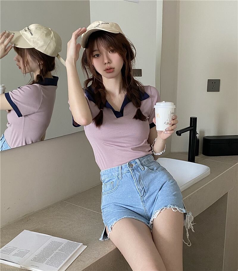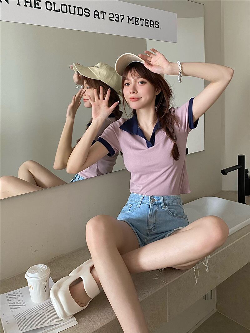 レッドカラーショートTシャツ夏服トップス 大人ガーリー スウィート キュート カジュアル 夏物 SYJ30333848220
