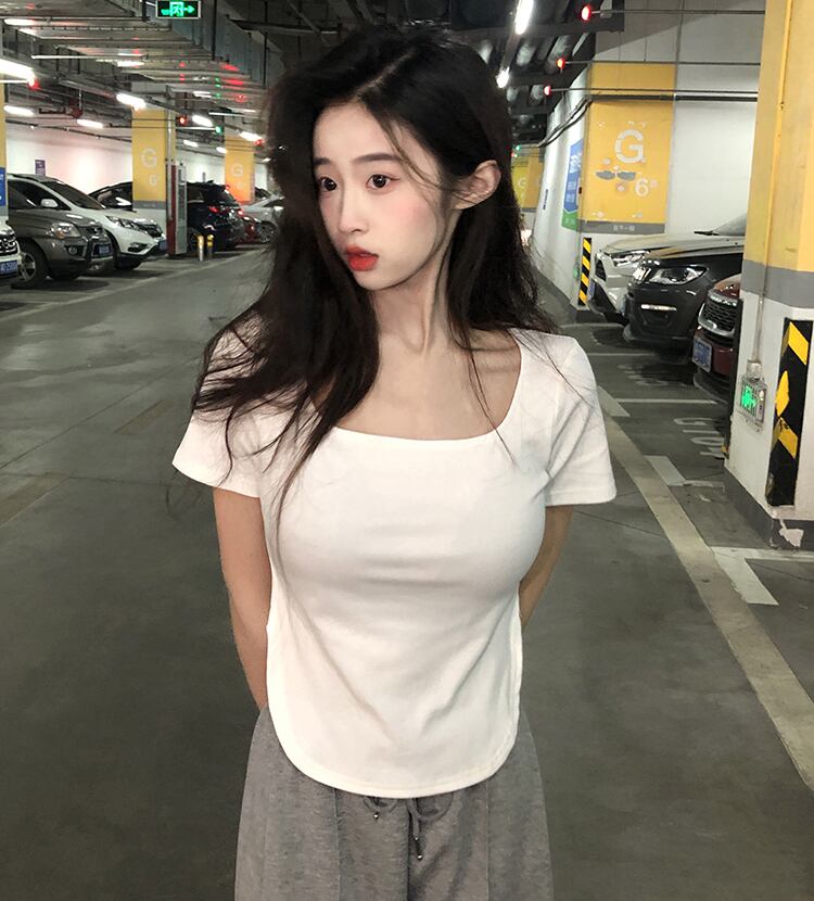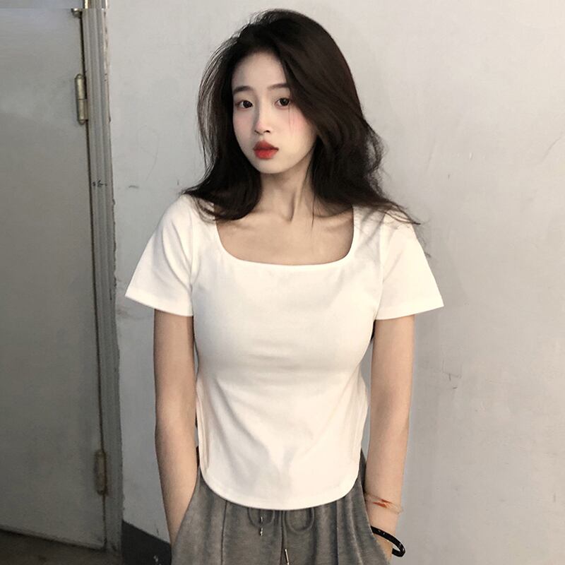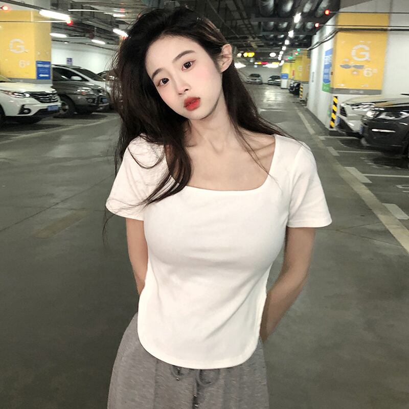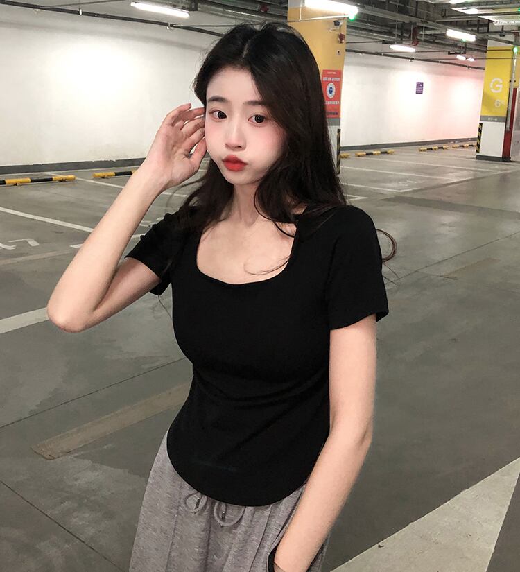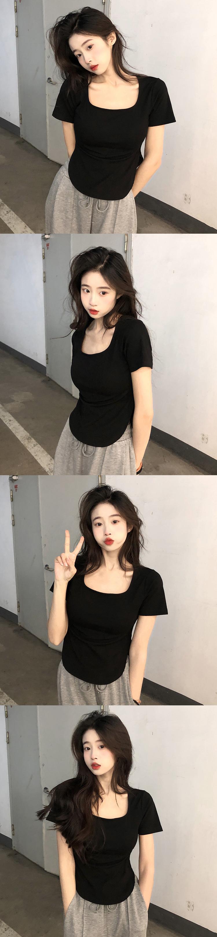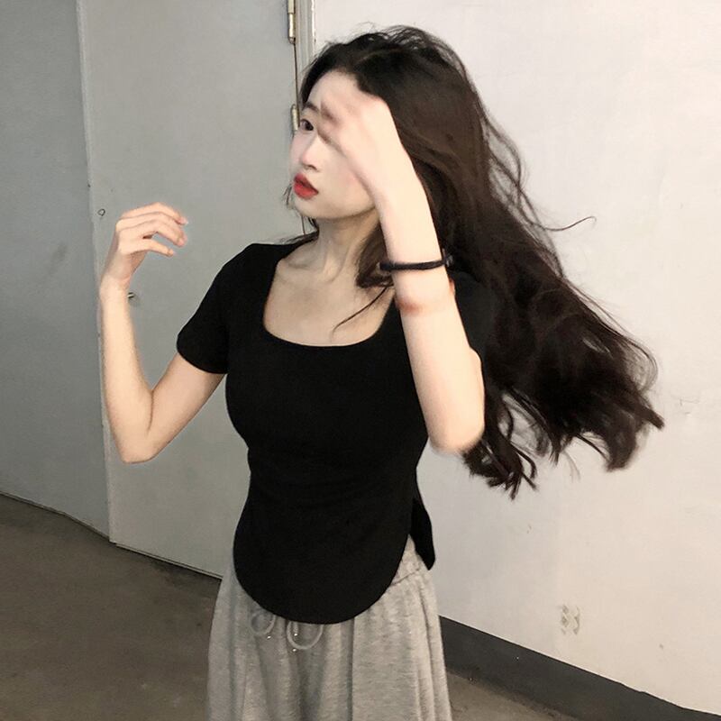 ブラックショートTシャツ夏服スリムフィットカラートップス NEW 夏物 スクウェア SYJ47165517943