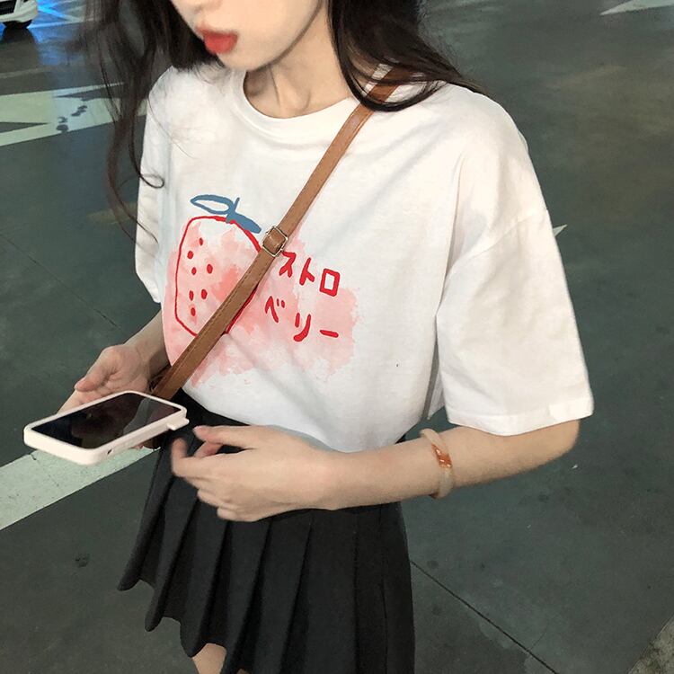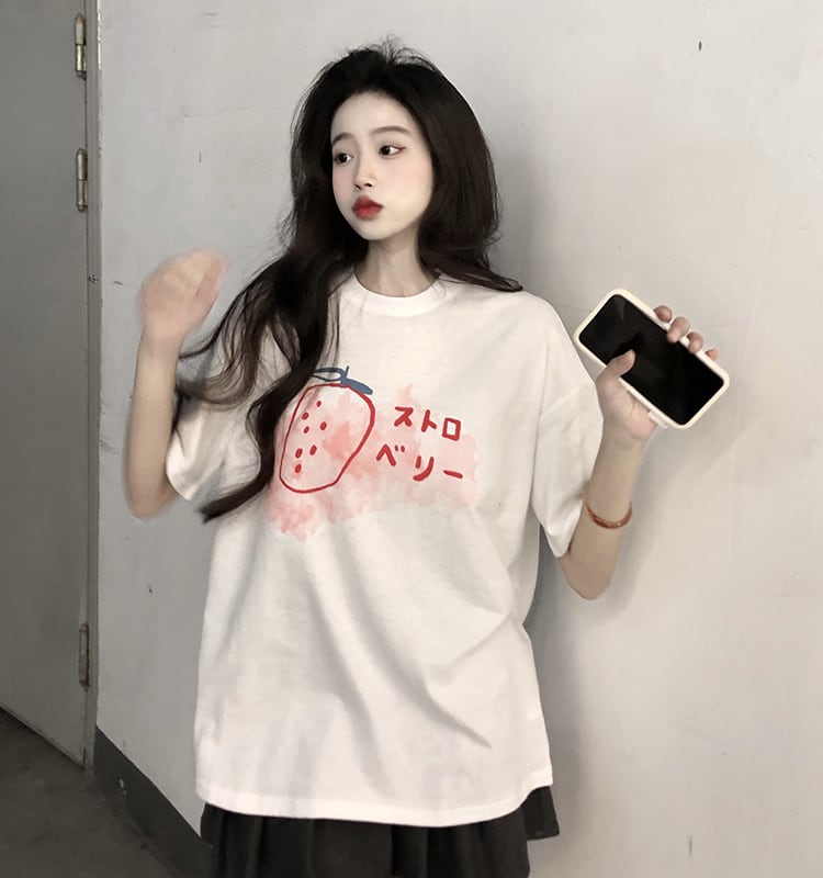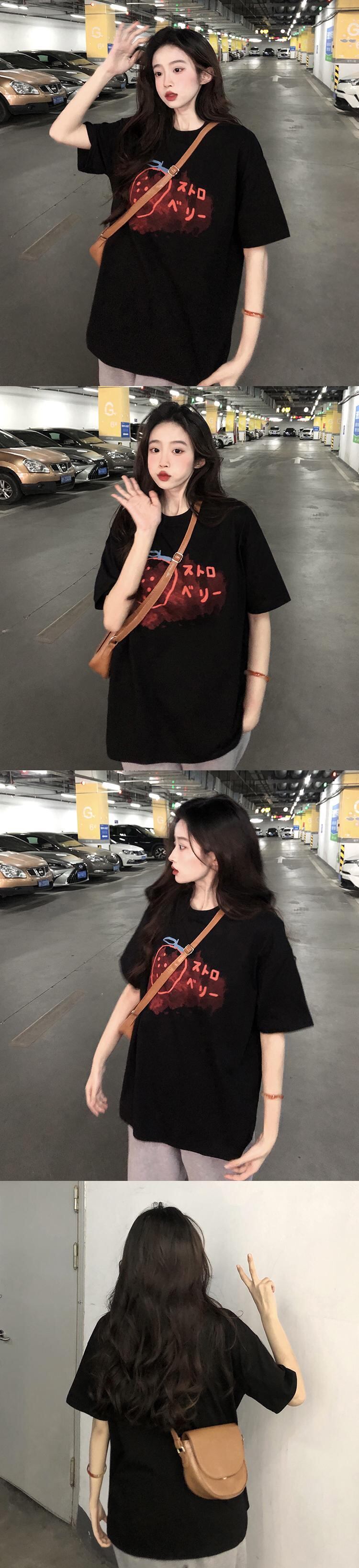 色:ホワイトウォーターペインティングストロベリーT,ブラックウォーターペインティングストロベリーT