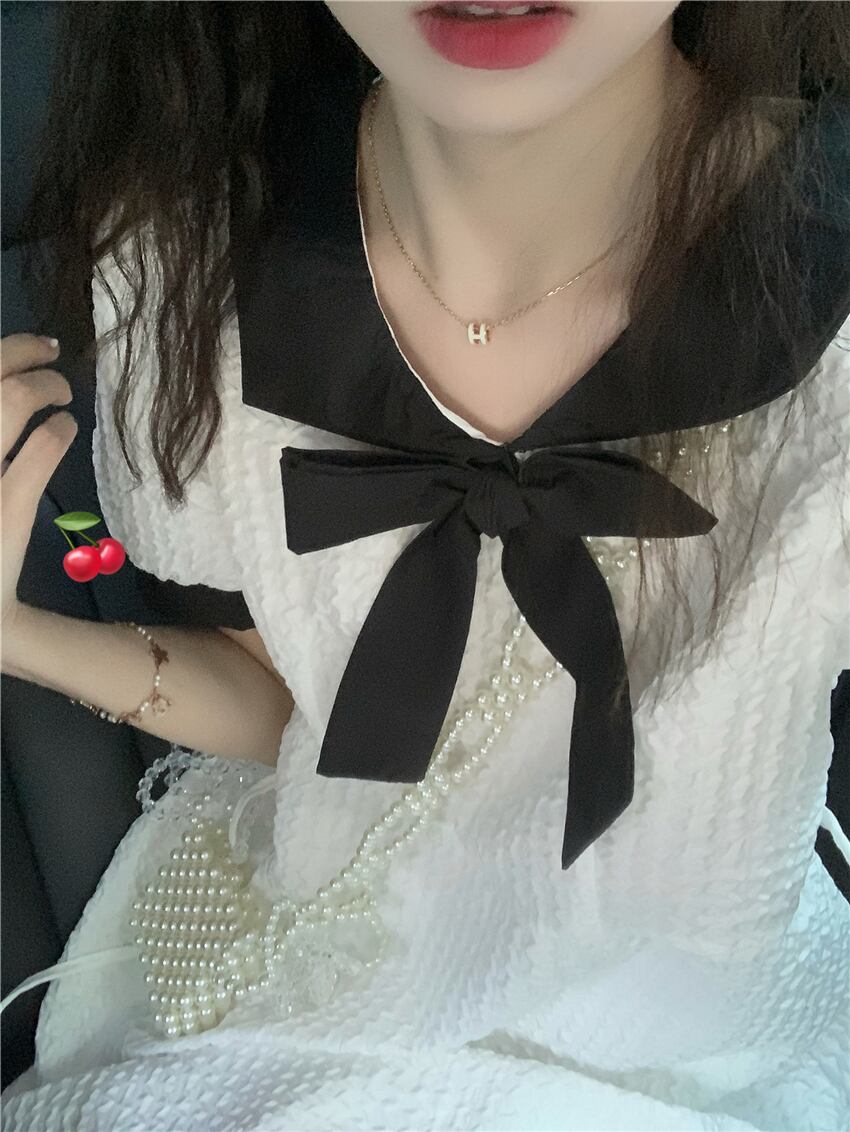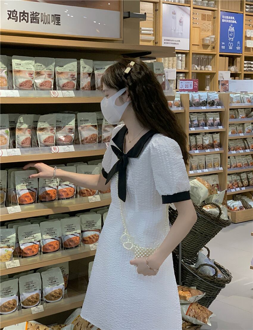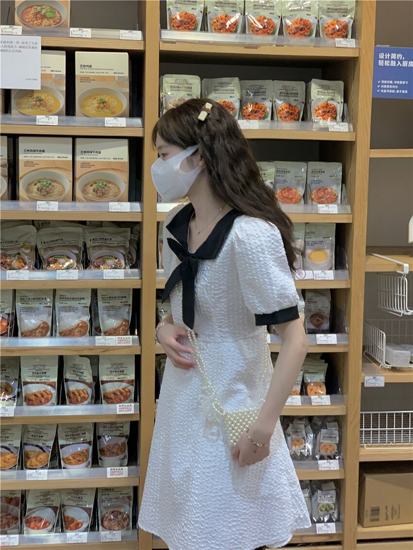 ホワイトリボンスリーブワンピース夏服スカート 夏物 SYJ23553691404